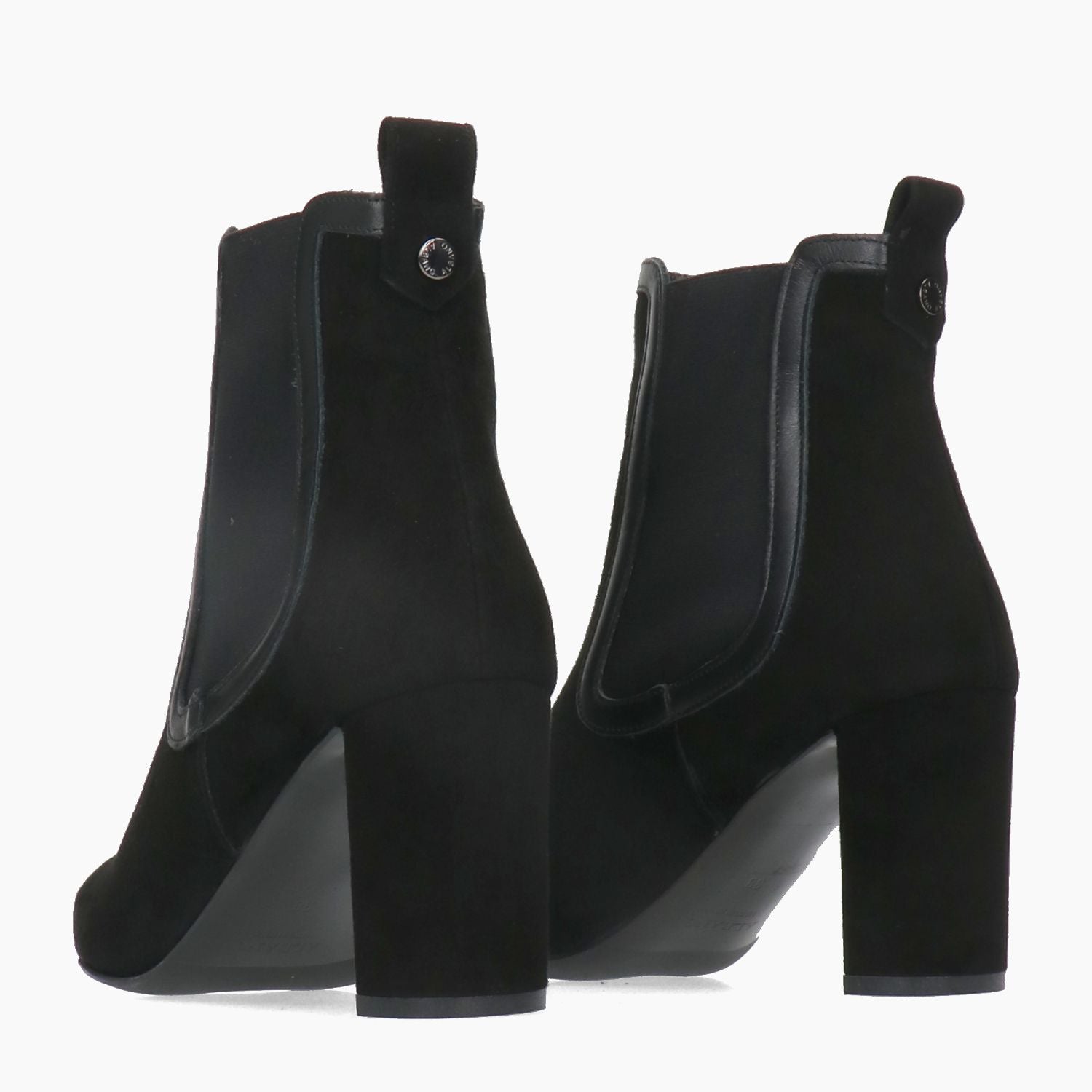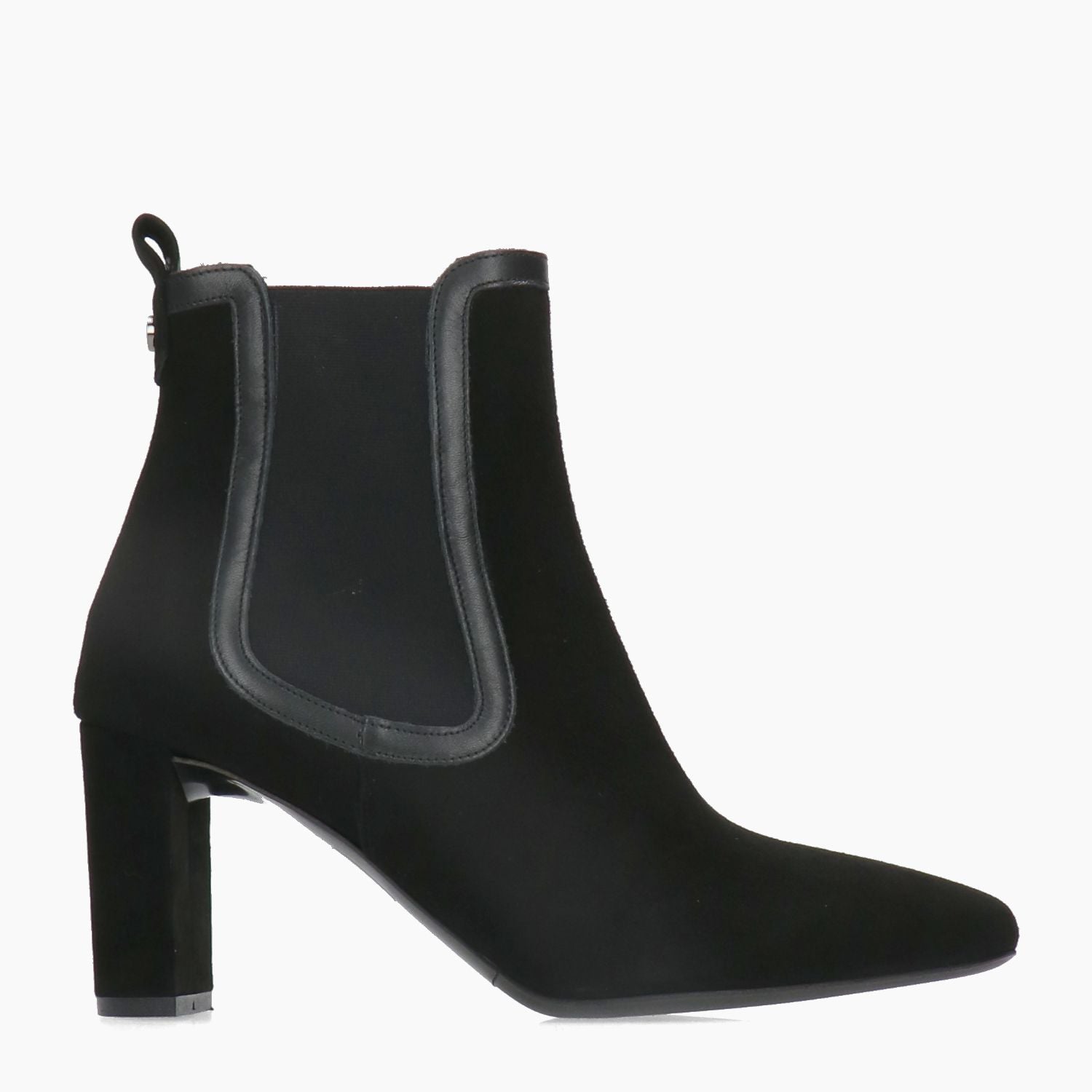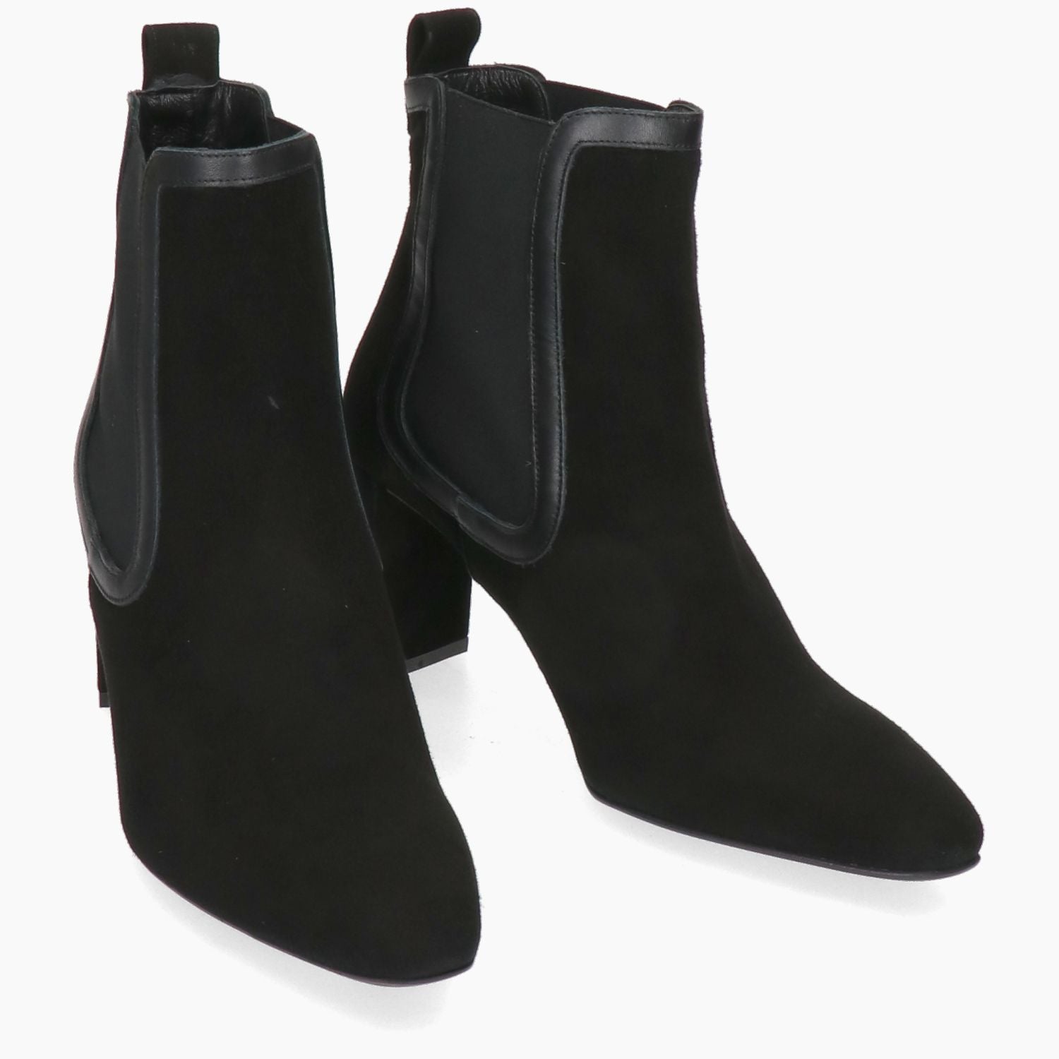 Black suede ankle boot with black elastic sides trimmed in black leather. Leather interior. Rubber sole with 7 cm heel. Albano women's Fall/Winter collection.