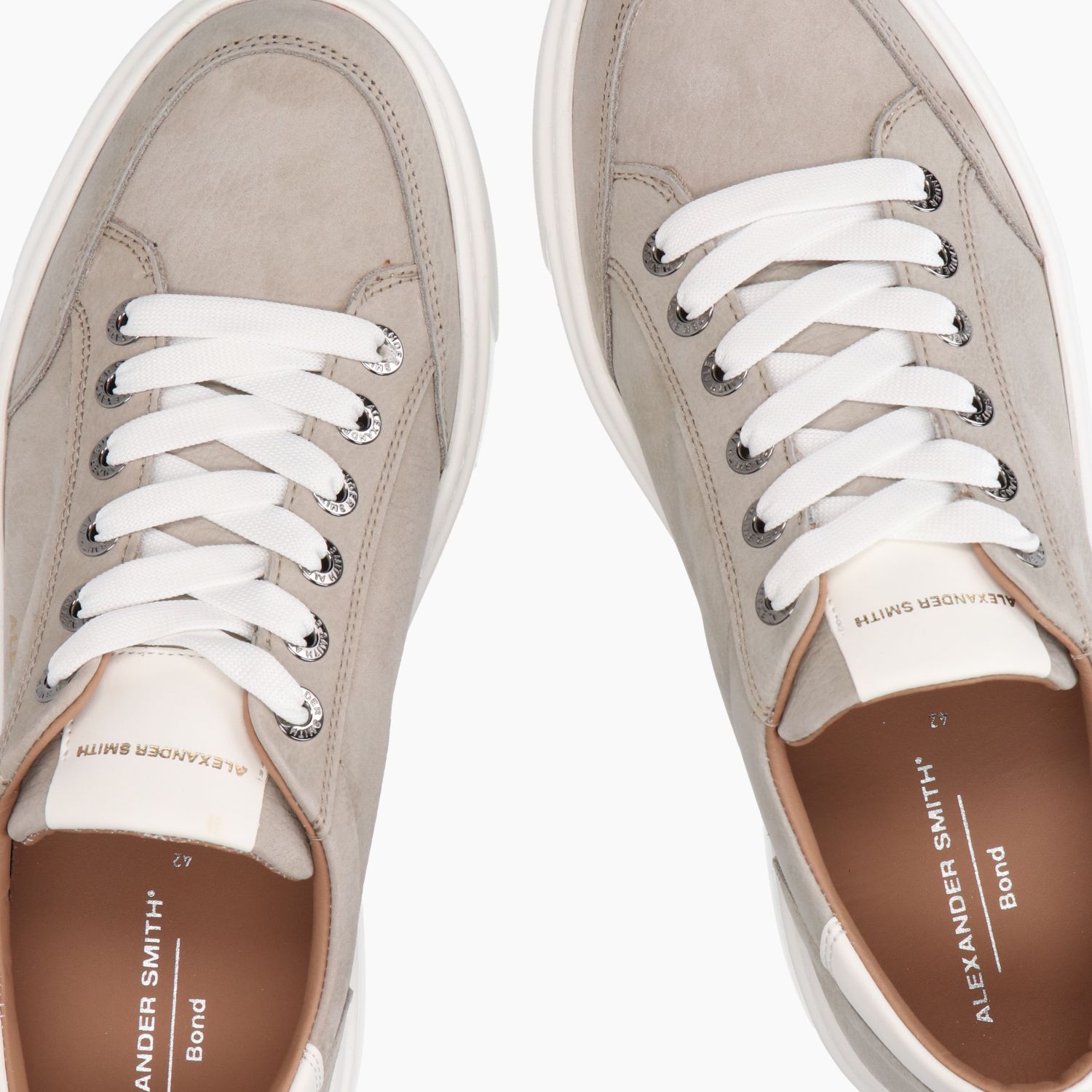 Bond sneakers with a hammered gray leather upper. Logo on the heel. Removable insole with leather and fabric lining. Cotton laces. Logo on the tongue. 3 cm rubber sole. Alexander Smith men's collection.