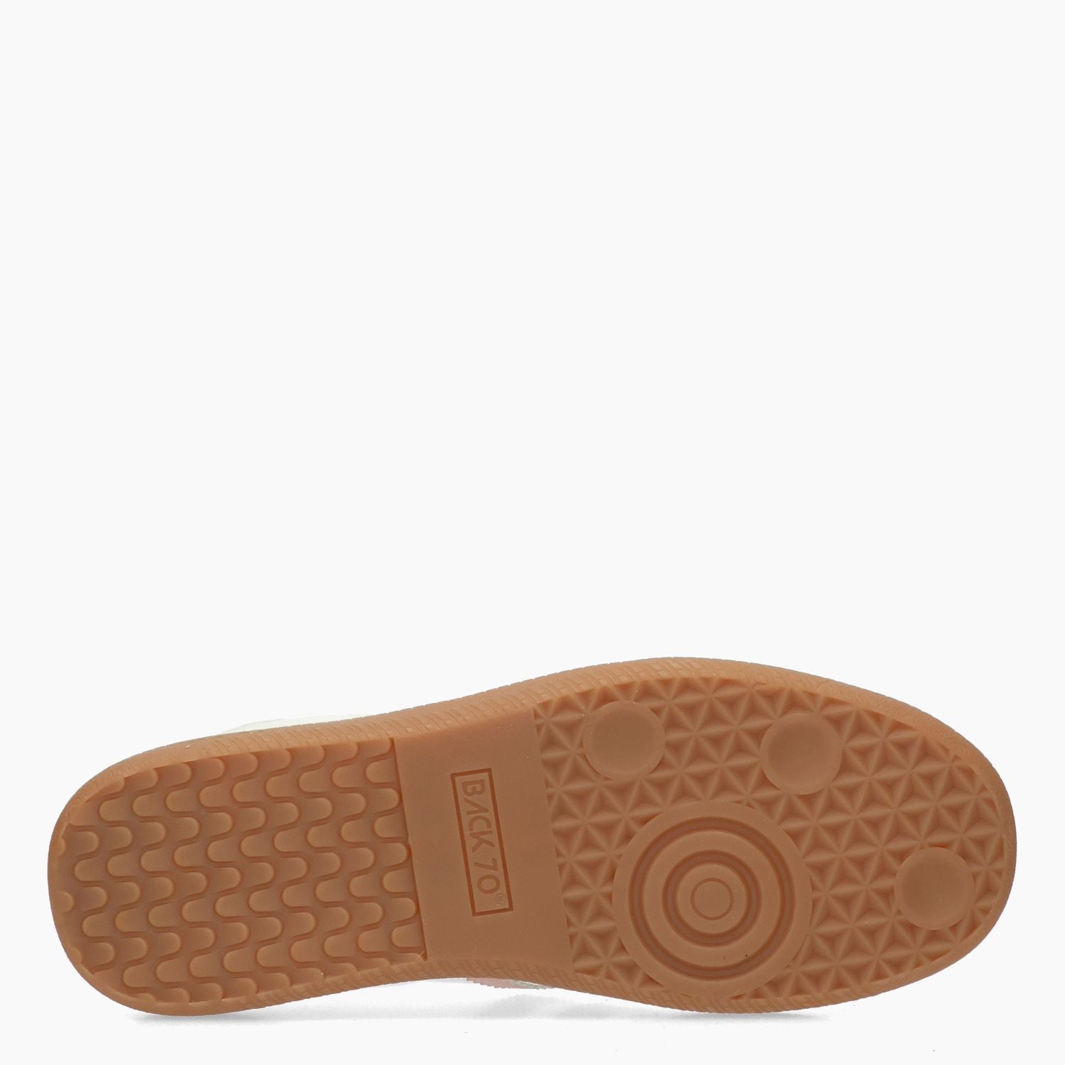 White leather sneakers with pink suede inserts. Pink laminated leather side logo. Fabric lining with removable insole. Putty-colored rubber sole. Back 70 women's spring/summer collection.