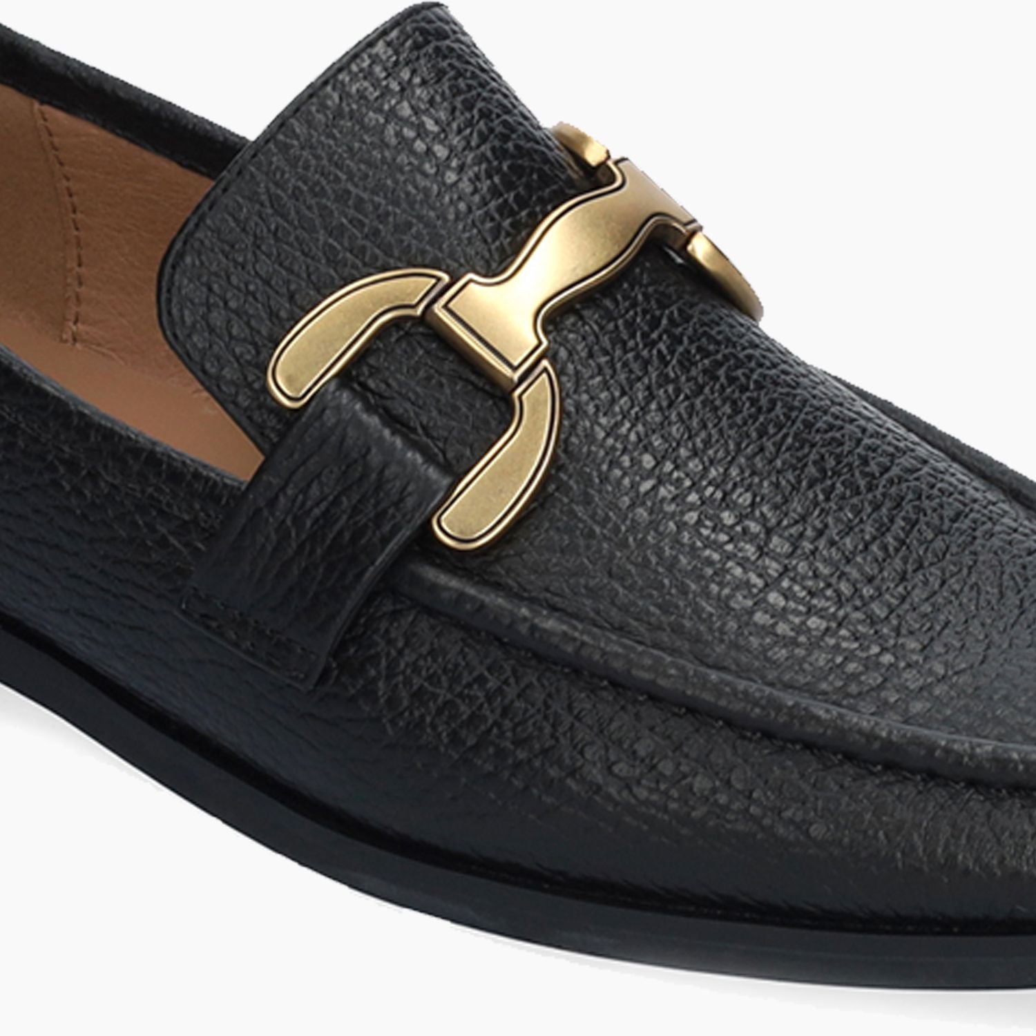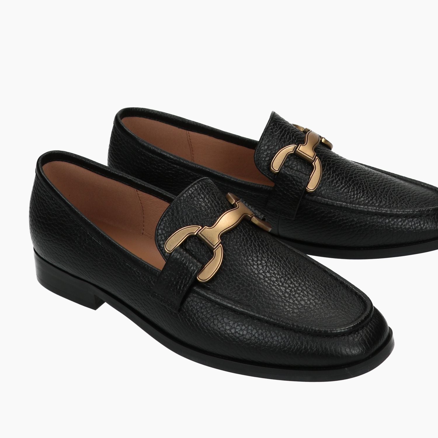 Bibi Lou loafers with black hammered leather upper. Gold-tone metal clip. Square toe. Leather lining. Rubber sole with 2 cm heel. Bibi Lou women's fall/winter collection.
