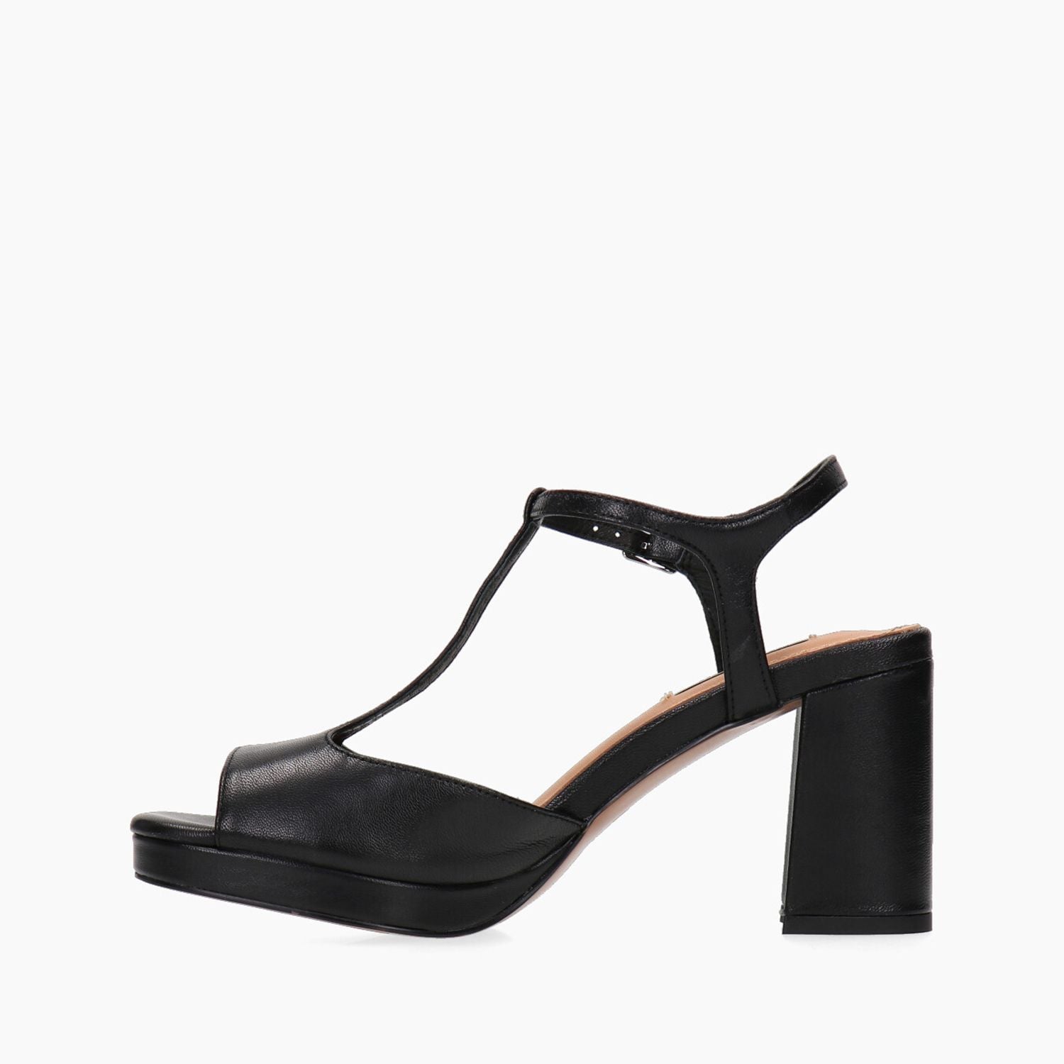 Black leather sandals, 80 cm heel, 20 cm platform, rubber sole.