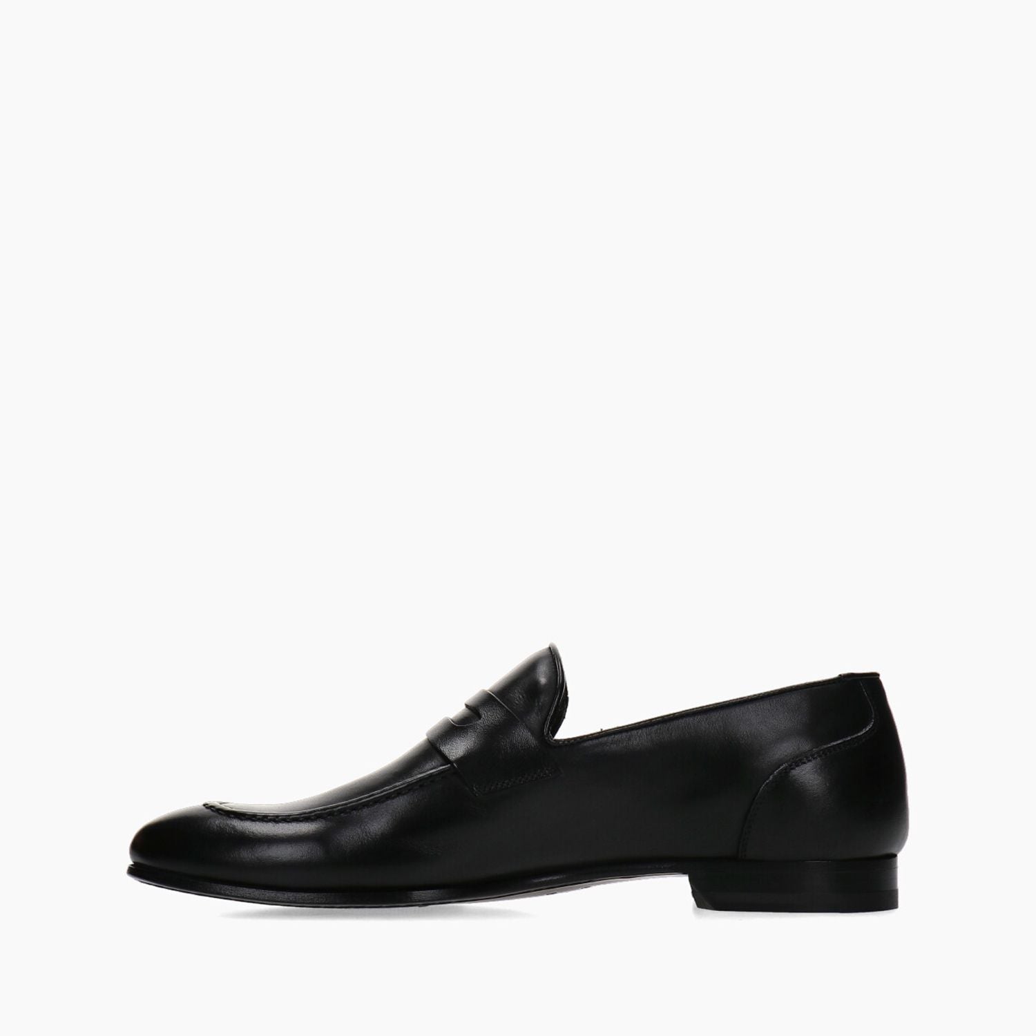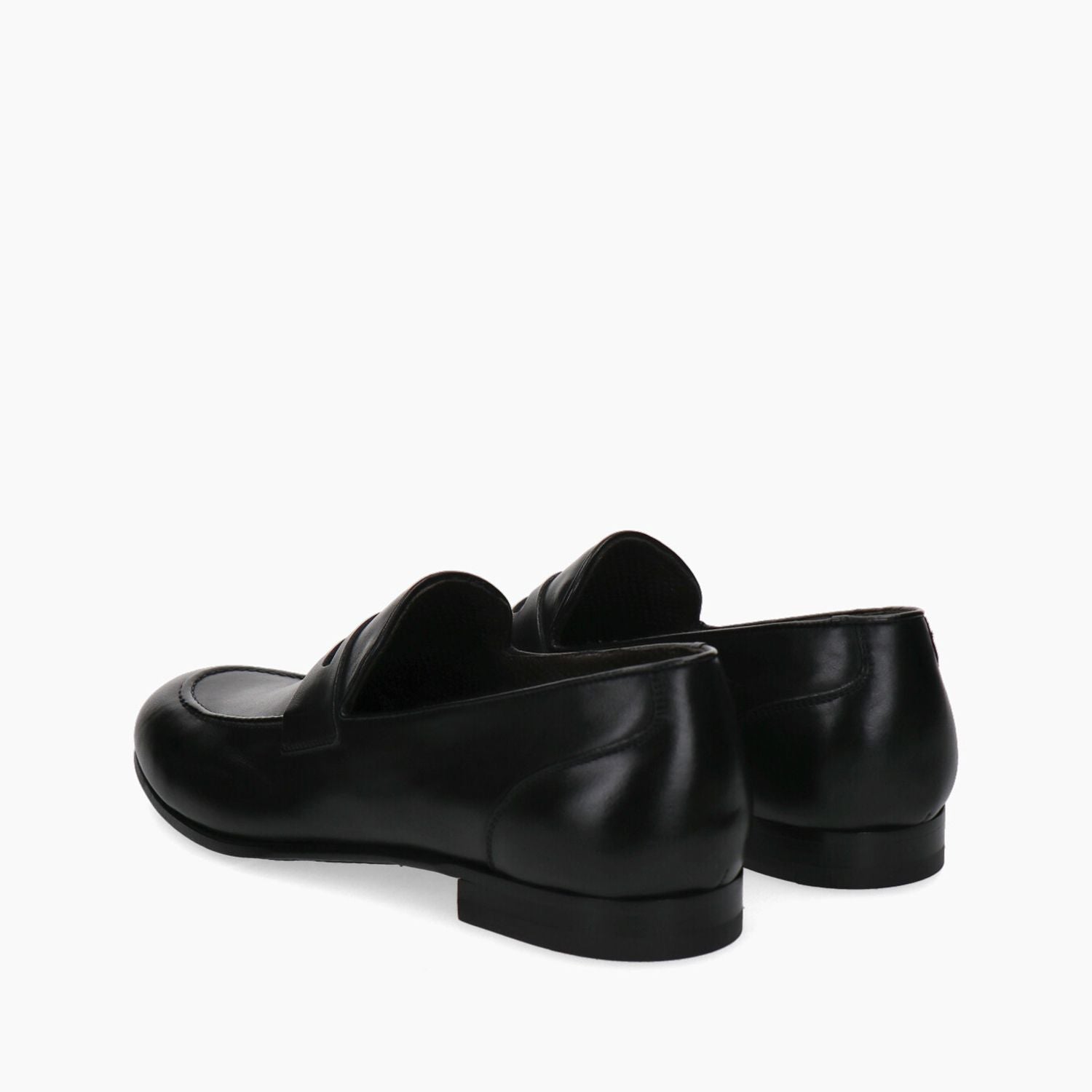 Black leather loafers, 20 cm heel, leather sole with stitched rubber island.