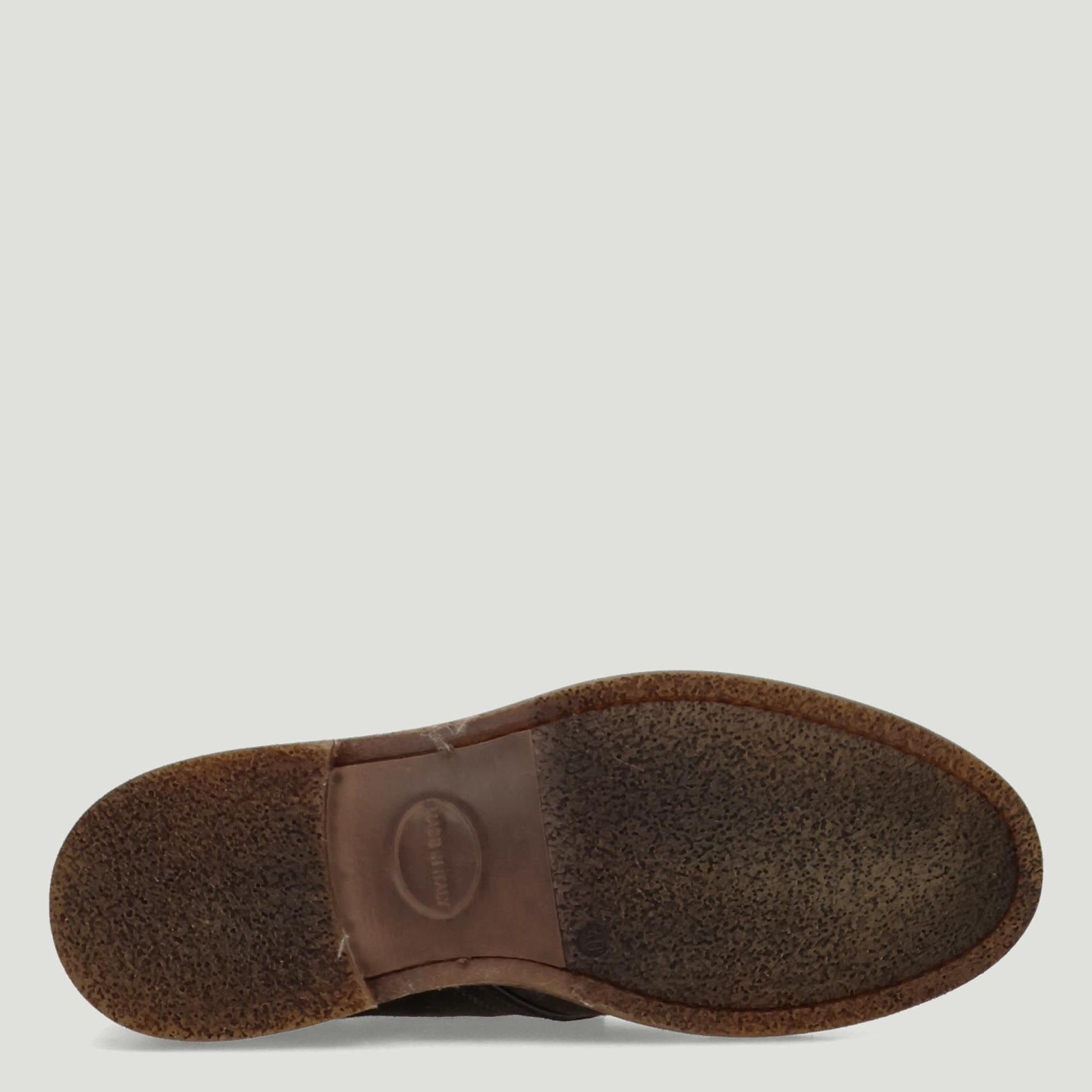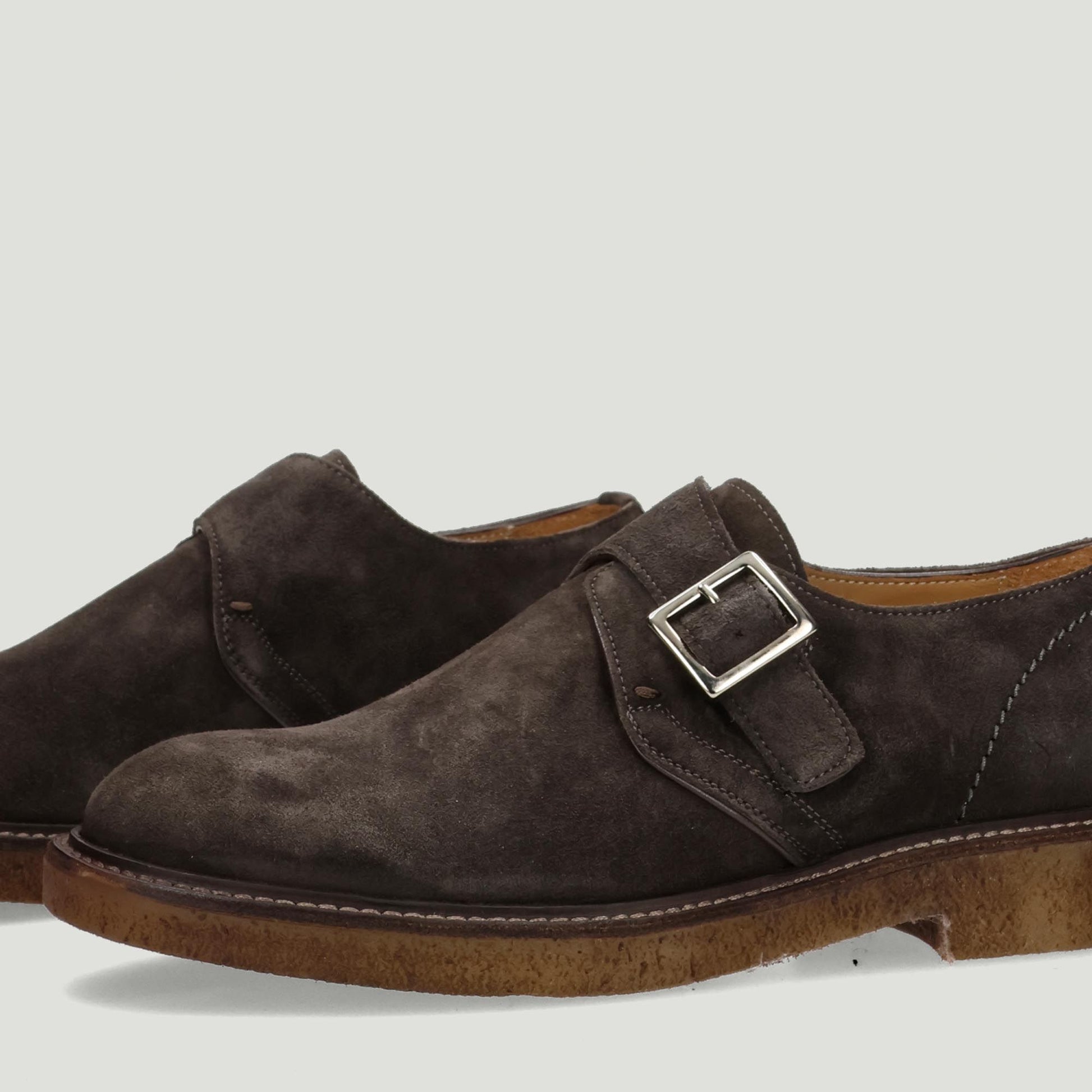 Dark brown suede shoe with adjustable buckle. Leather lining. Rubber sole with 2.5 cm heel. Brecos men's fall/winter collection.