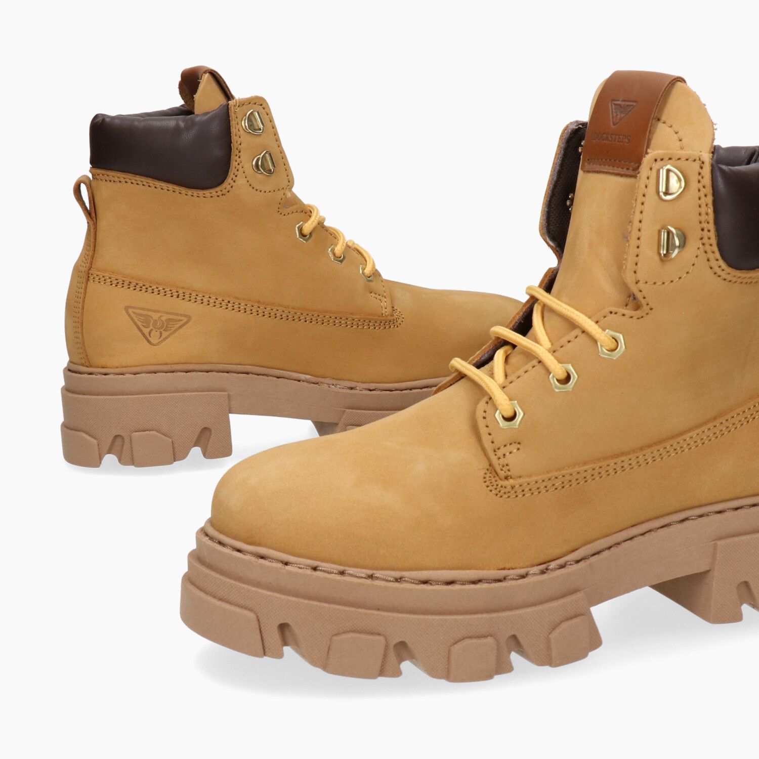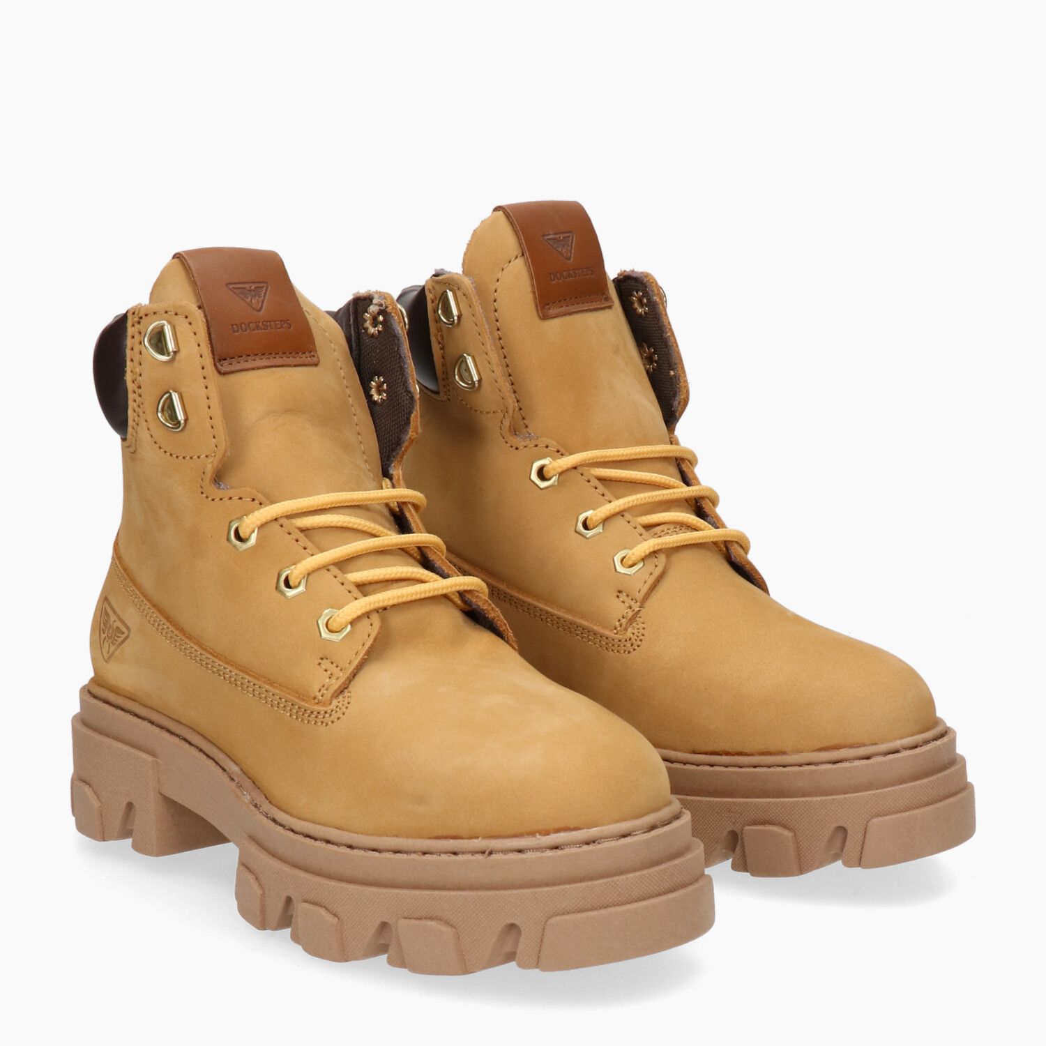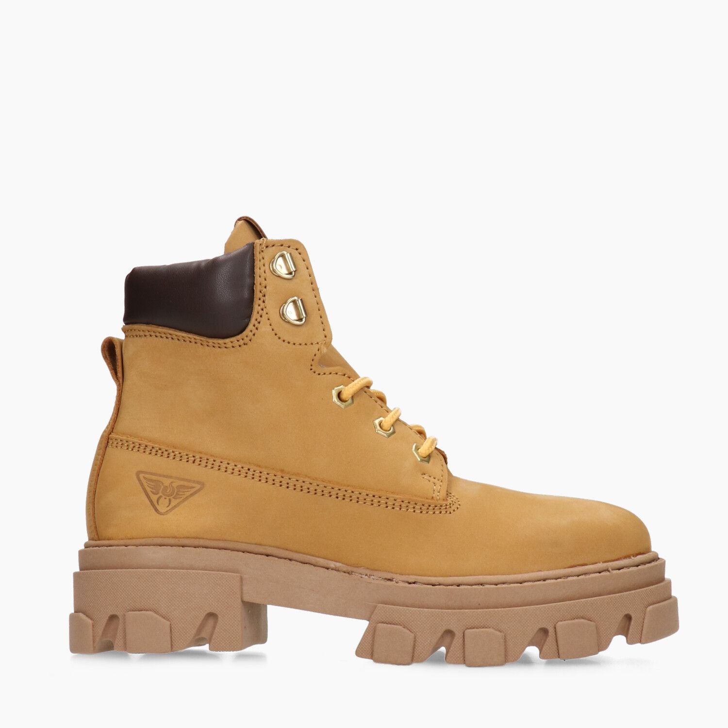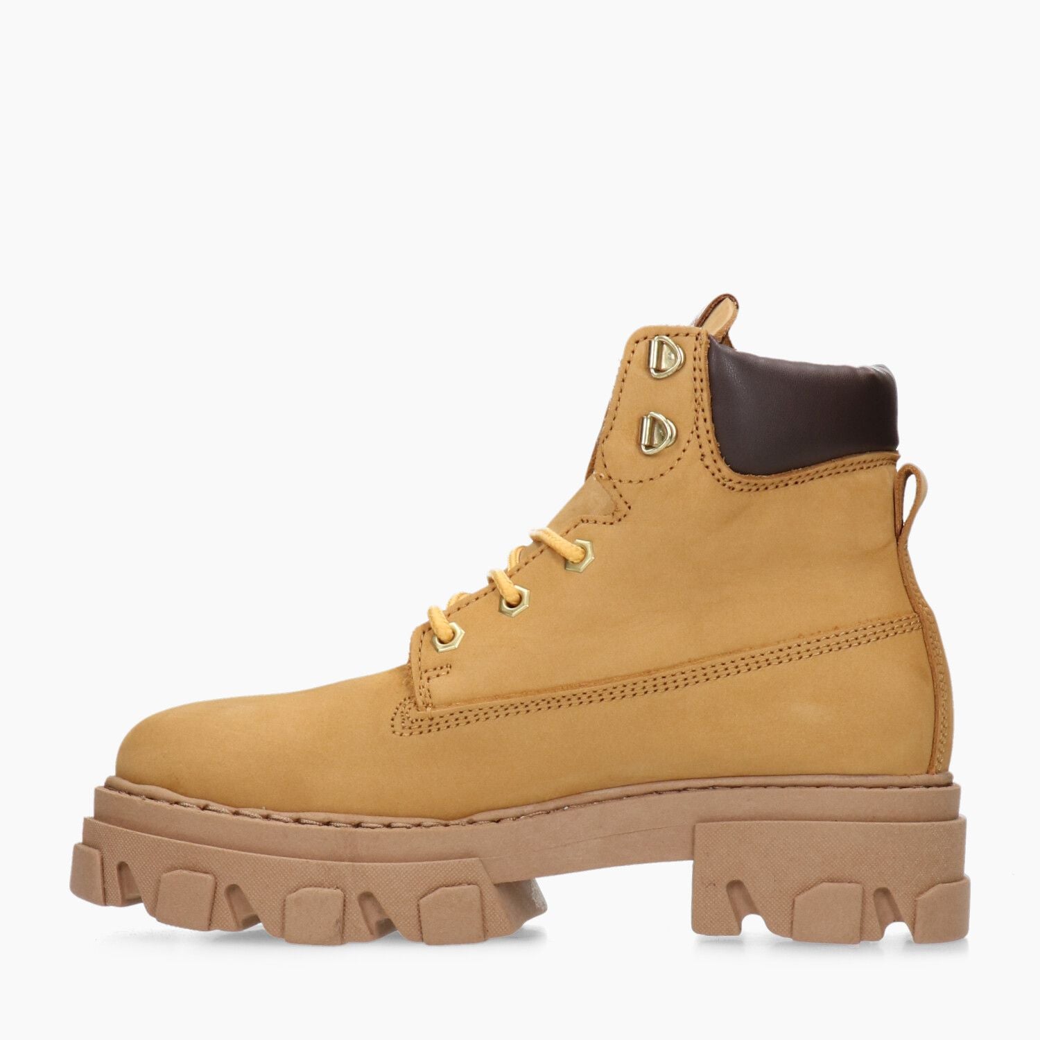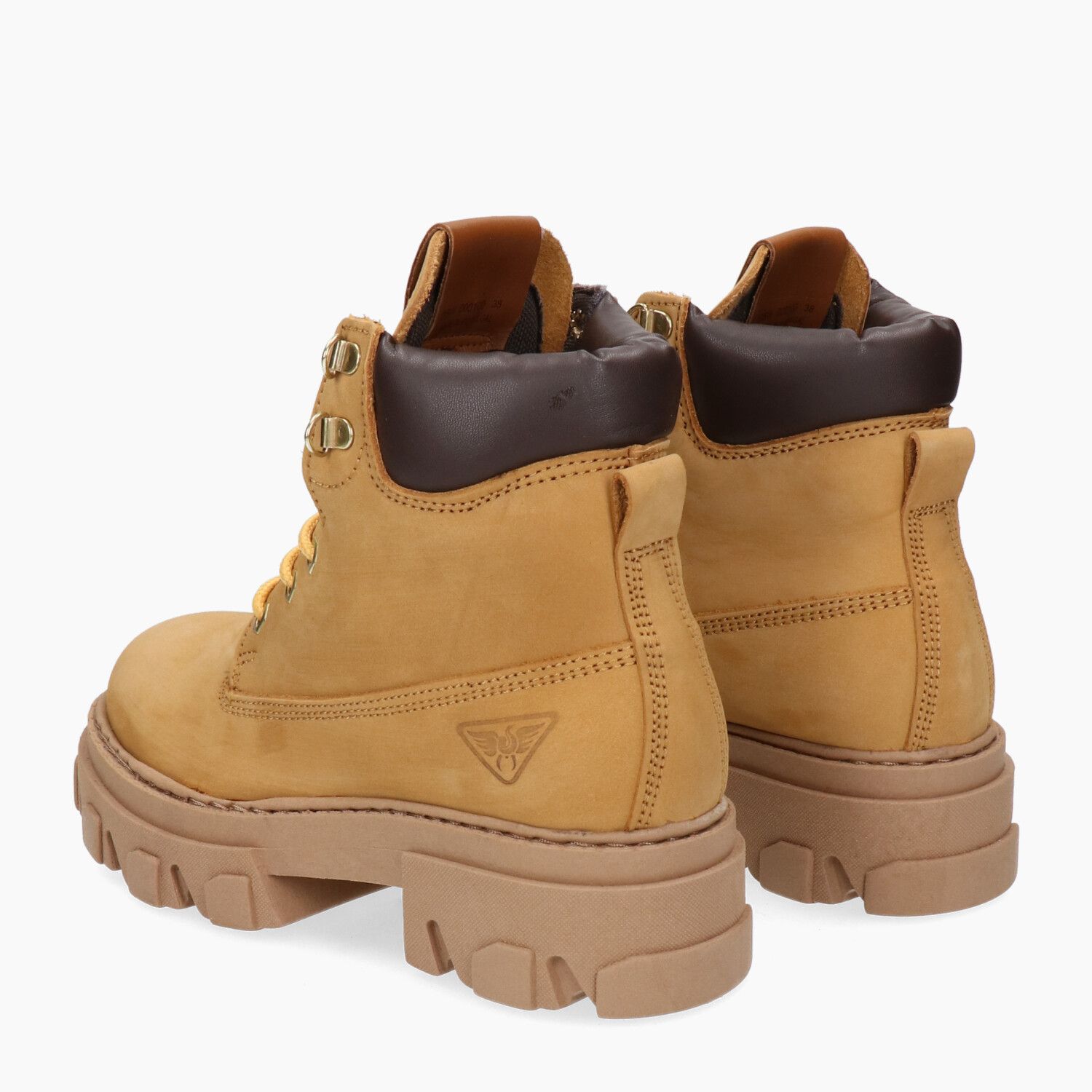Honey nubuck ankle boots, rubber sole.