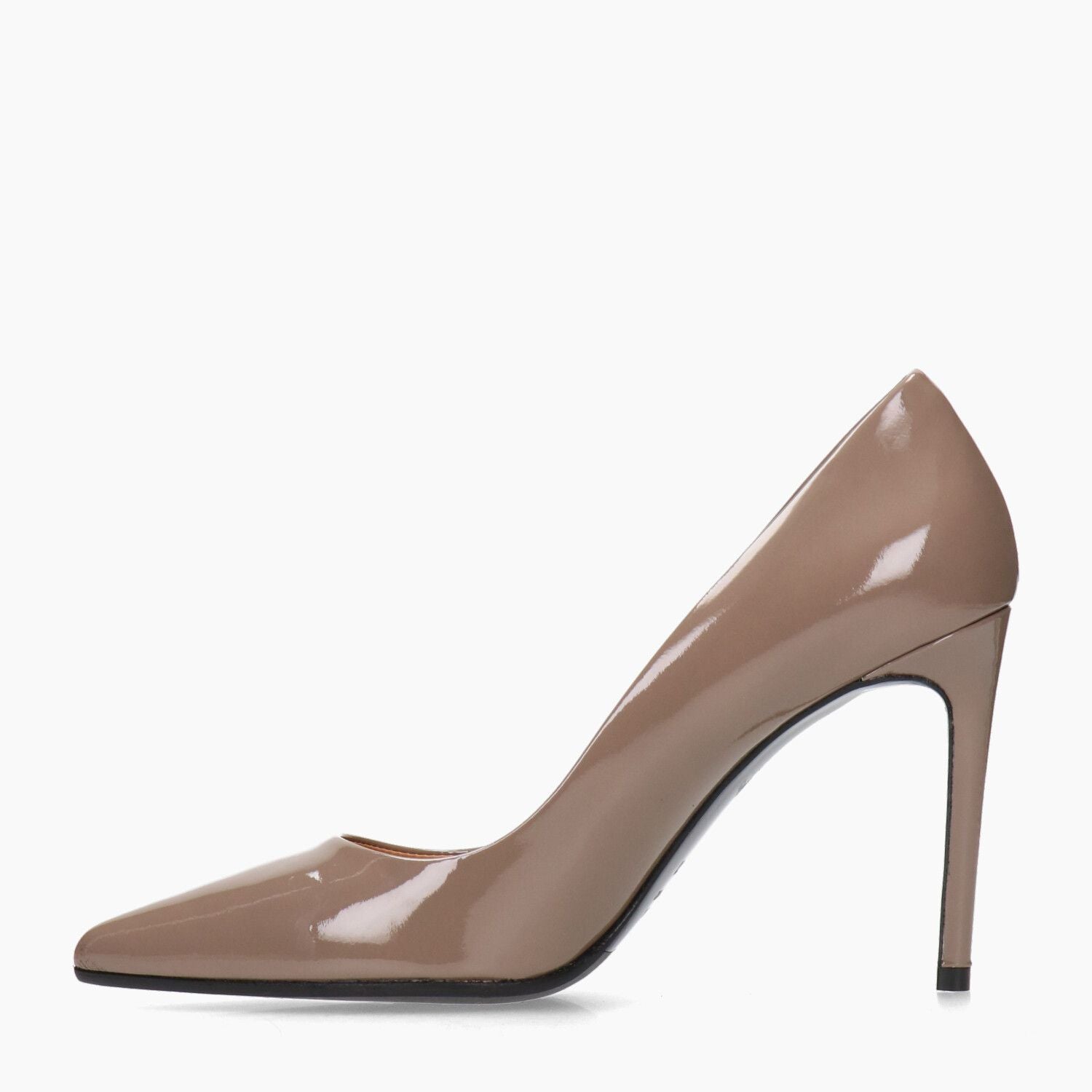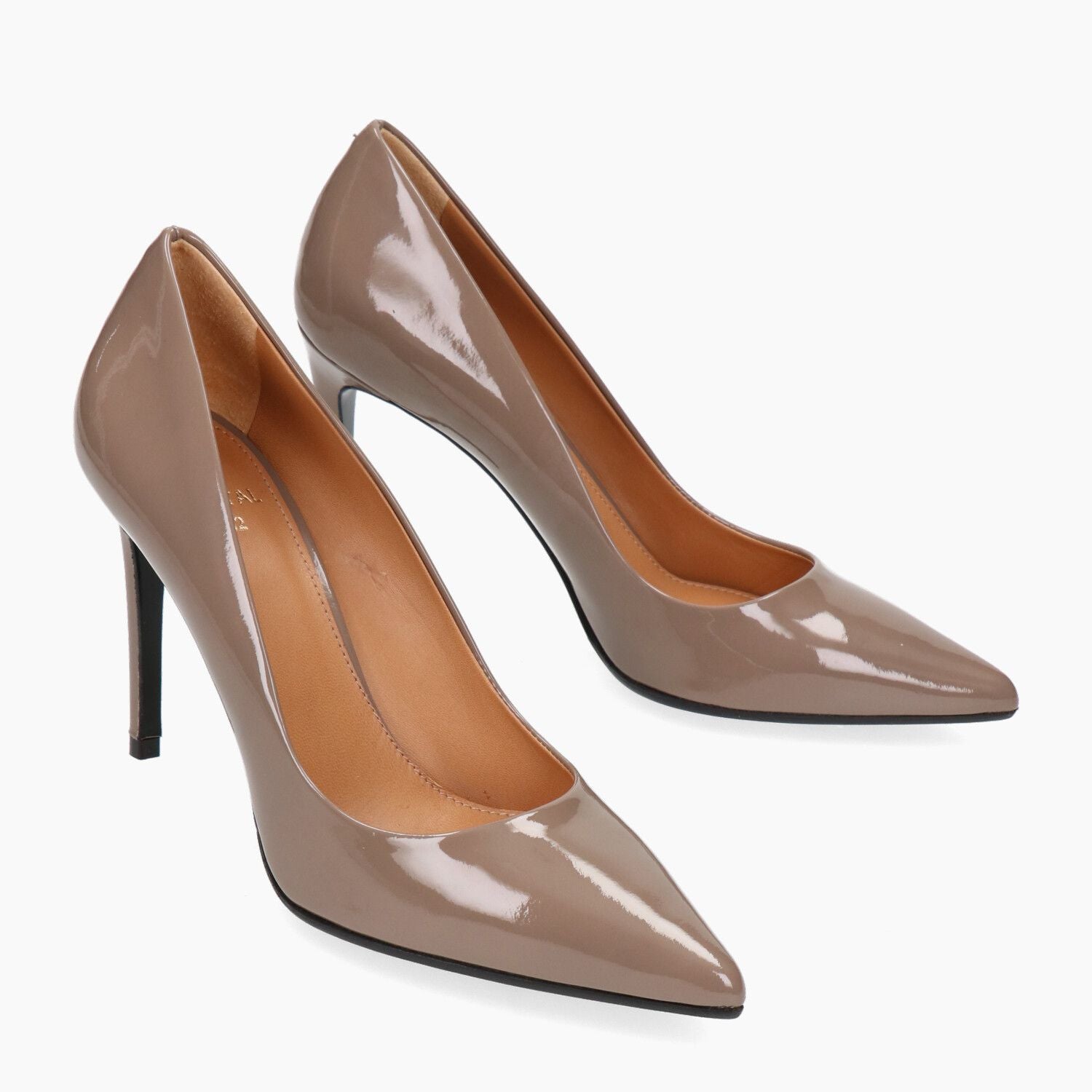 Mud patent leather pumps, leather and rubber sole.