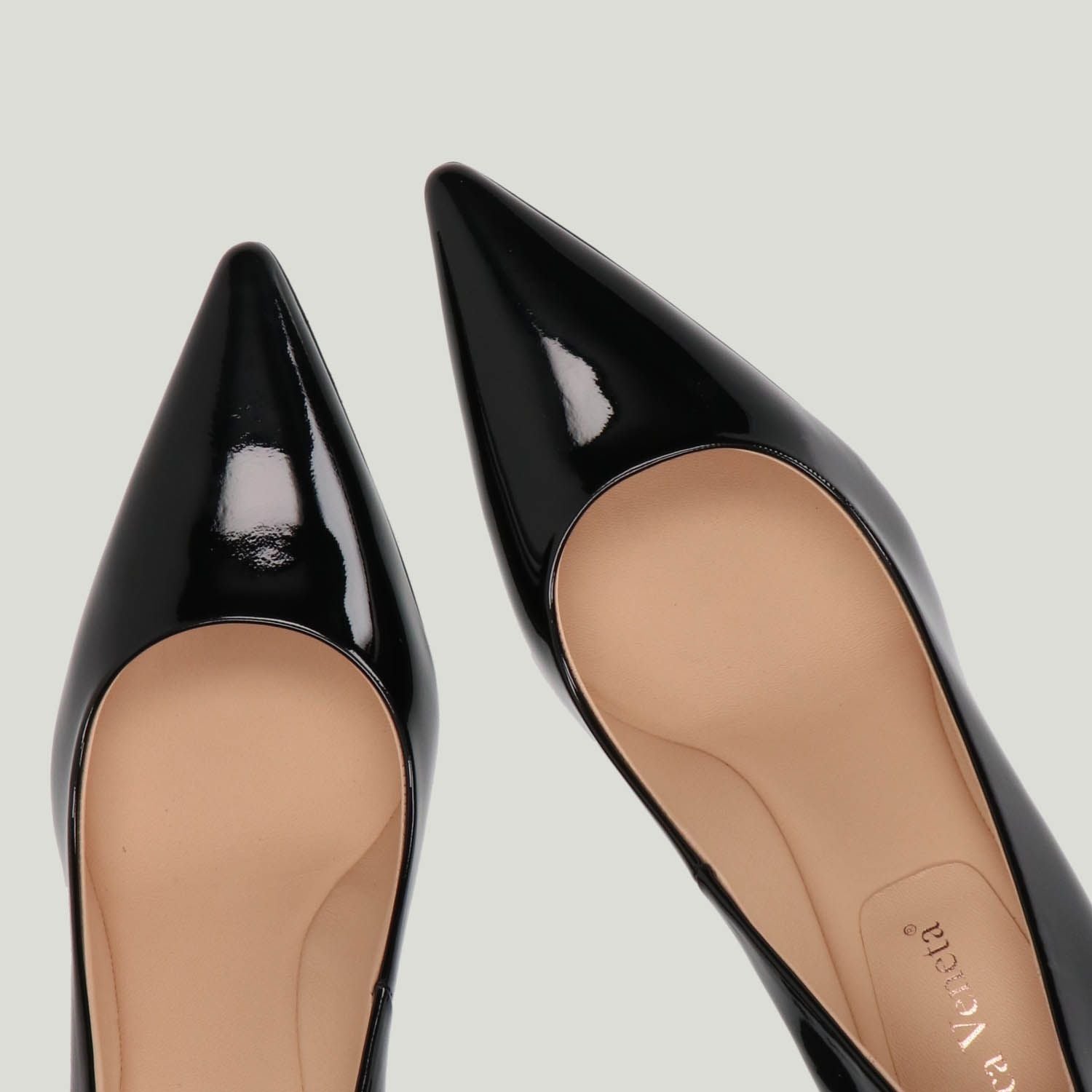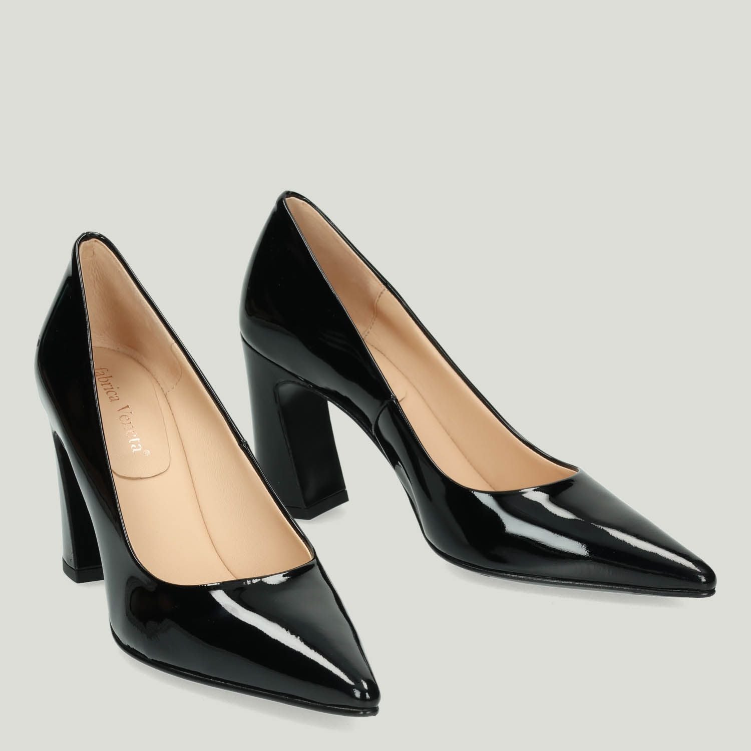 Burgundy patent leather pumps. Satchel-style leather interior. Leather sole with non-slip rubber insert. 8 cm heel. Fabrica Veneta women's collection.