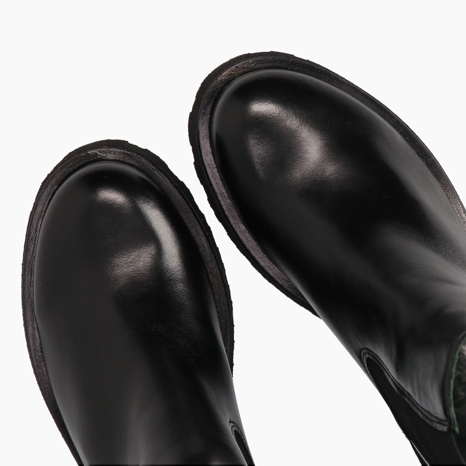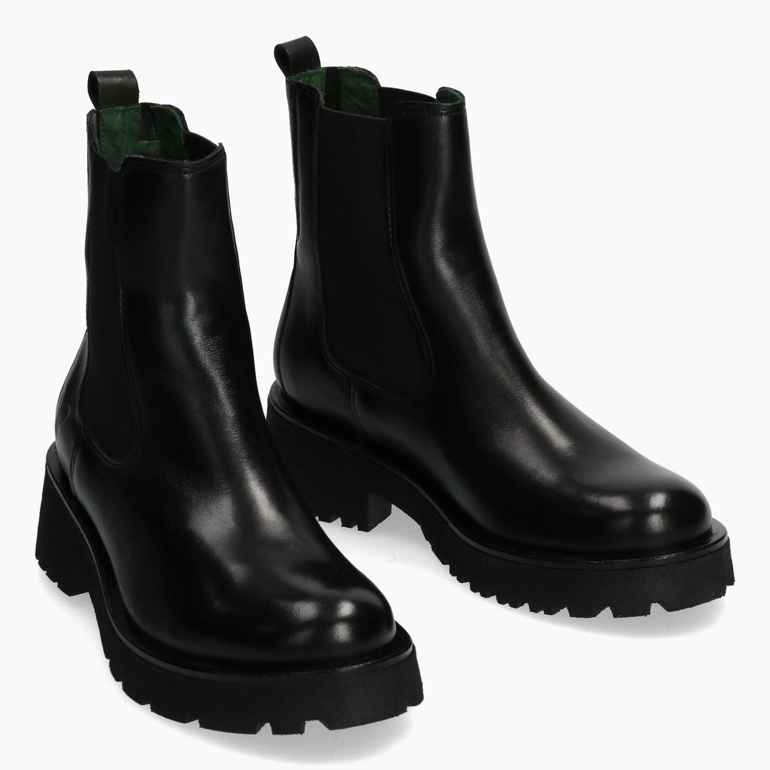Felmini ankle boots with black leather upper. Black elastic side panels partially covered in leather. Leather and fabric lining. Rubber sole with 4.5 cm heel. Felmini women's Fall/Winter collection.