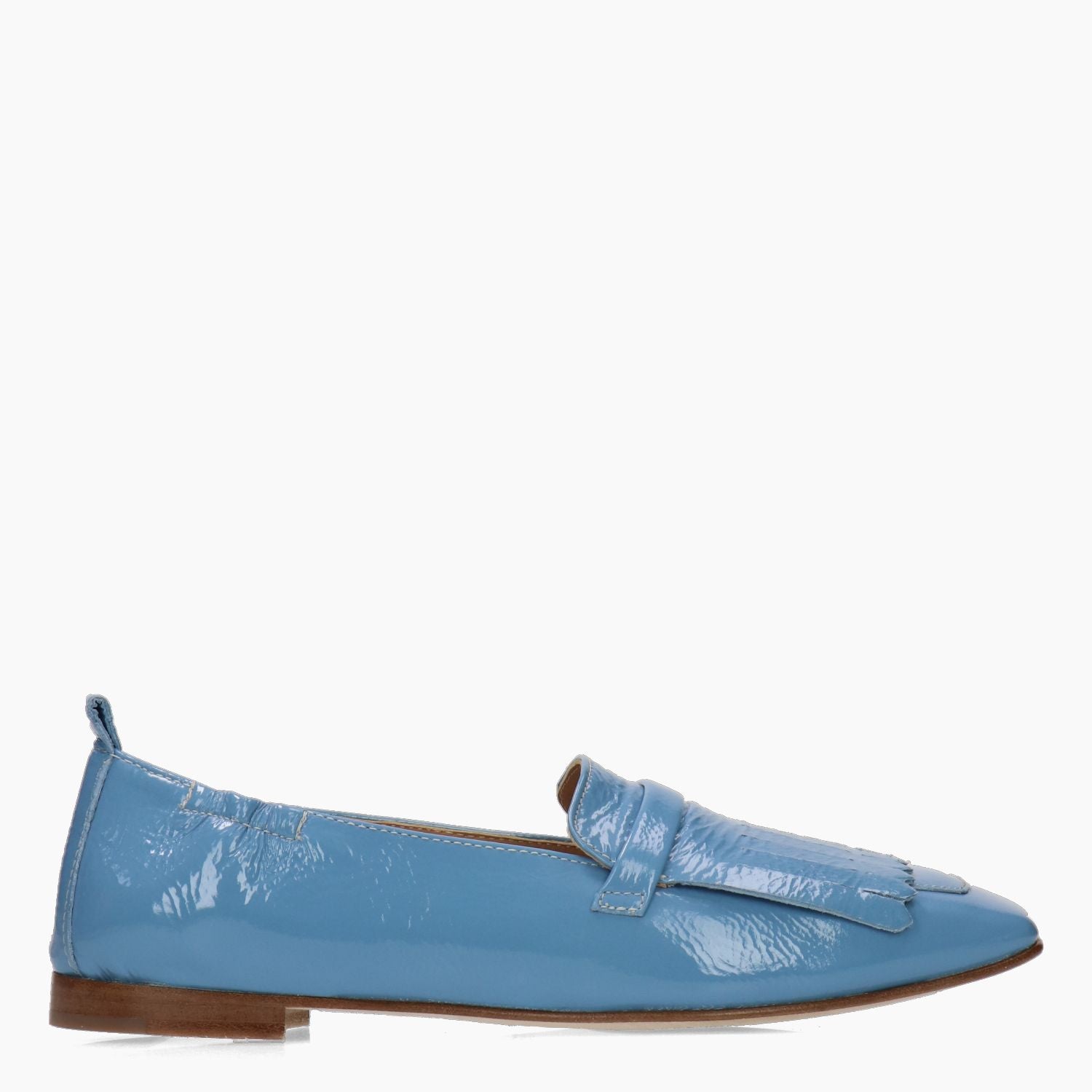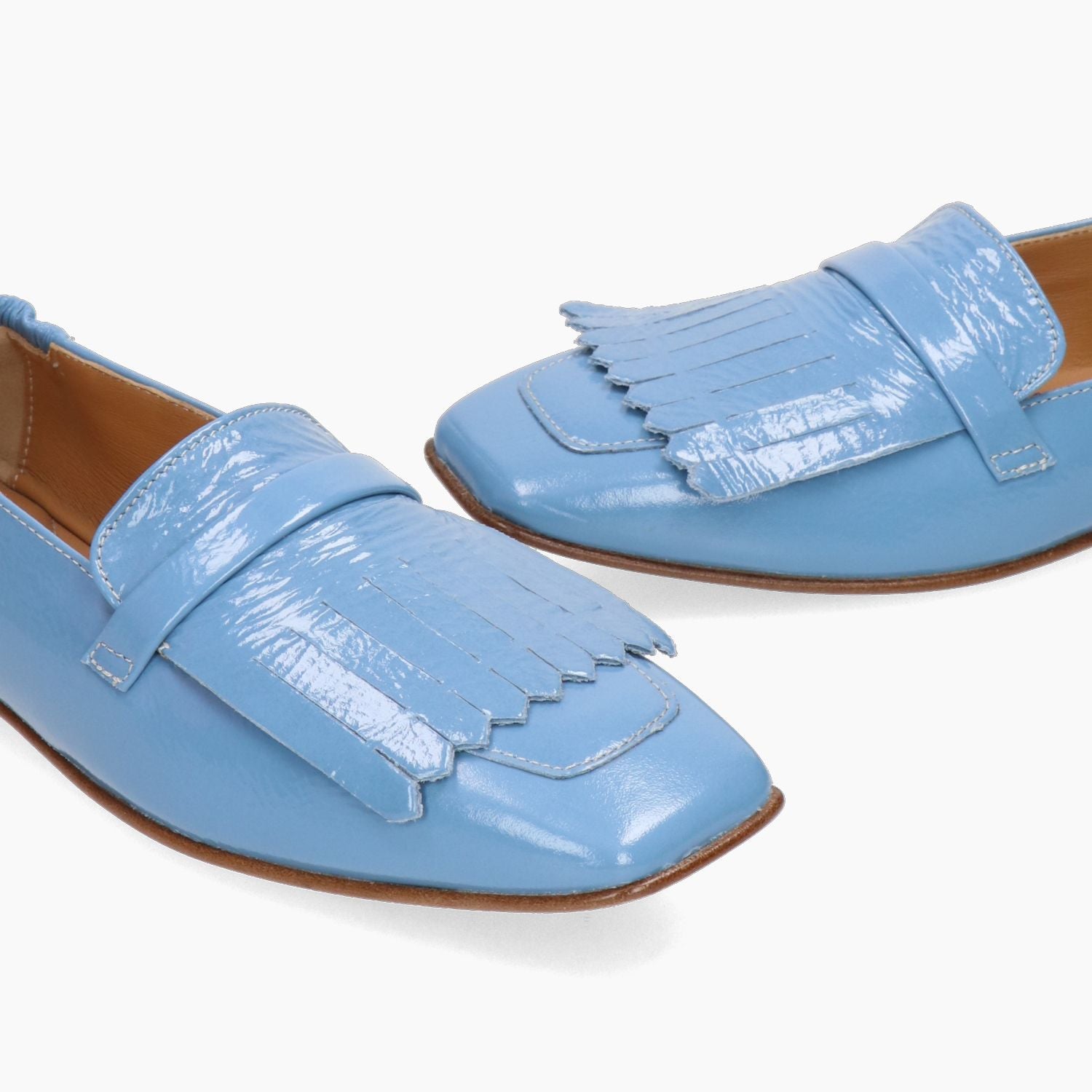 Light blue naplak loafers with fringe. Leather lining with a slip-on finish. Leather and rubber sole with a 1 cm heel. Garlani women's Spring/Summer collection.