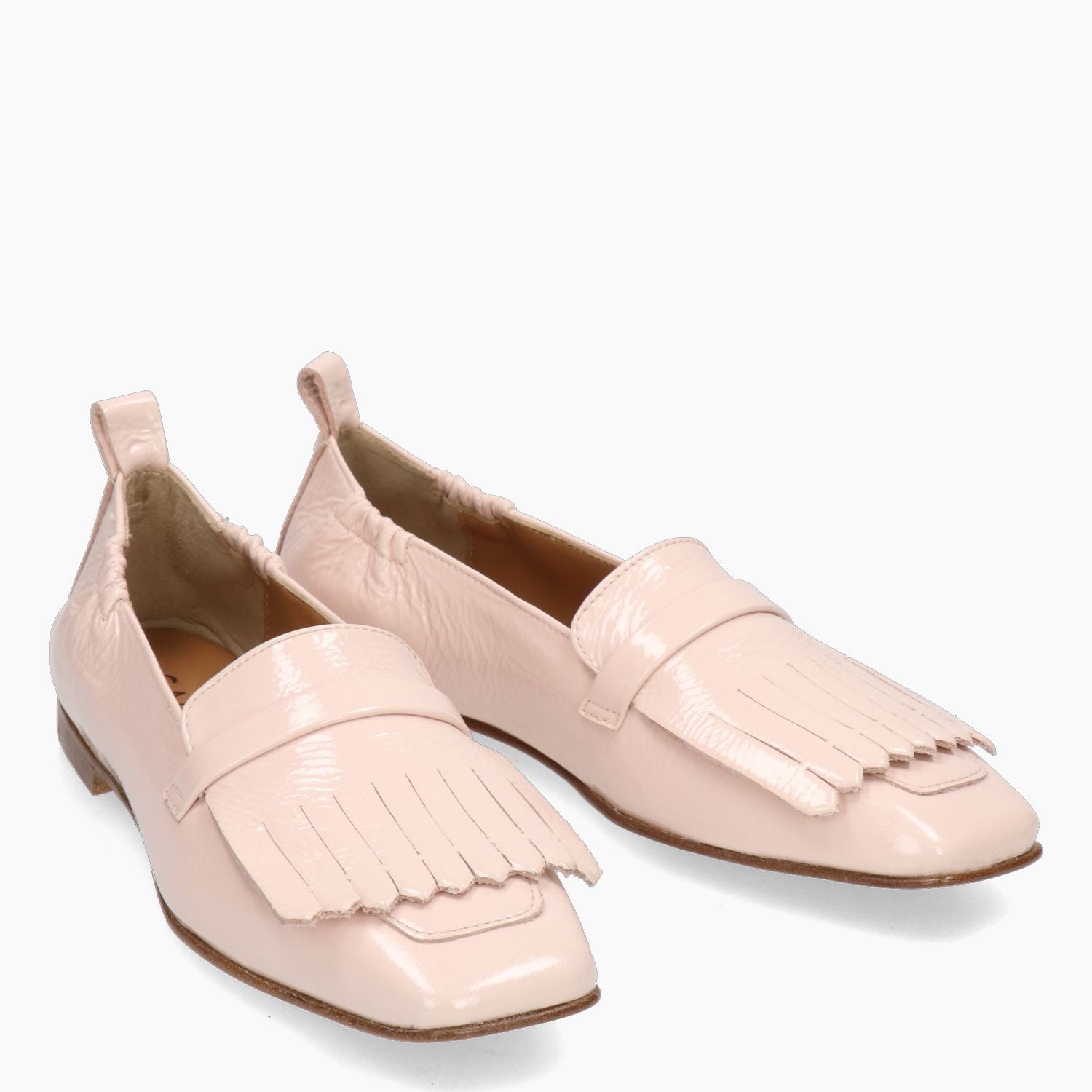 Nude naplak loafers with fringe. Leather lining with slip-on detailing. Leather and rubber sole with a 1 cm heel. Garlani women's Spring/Summer collection.