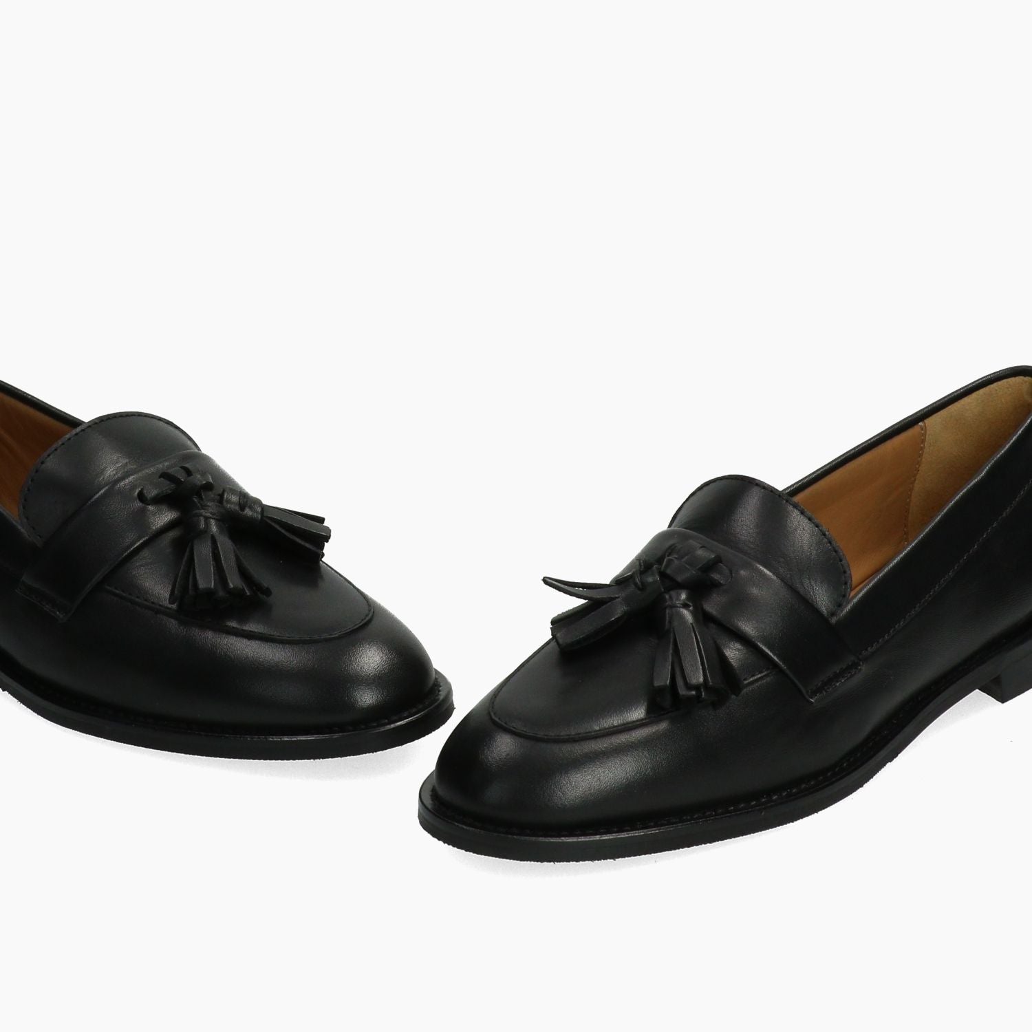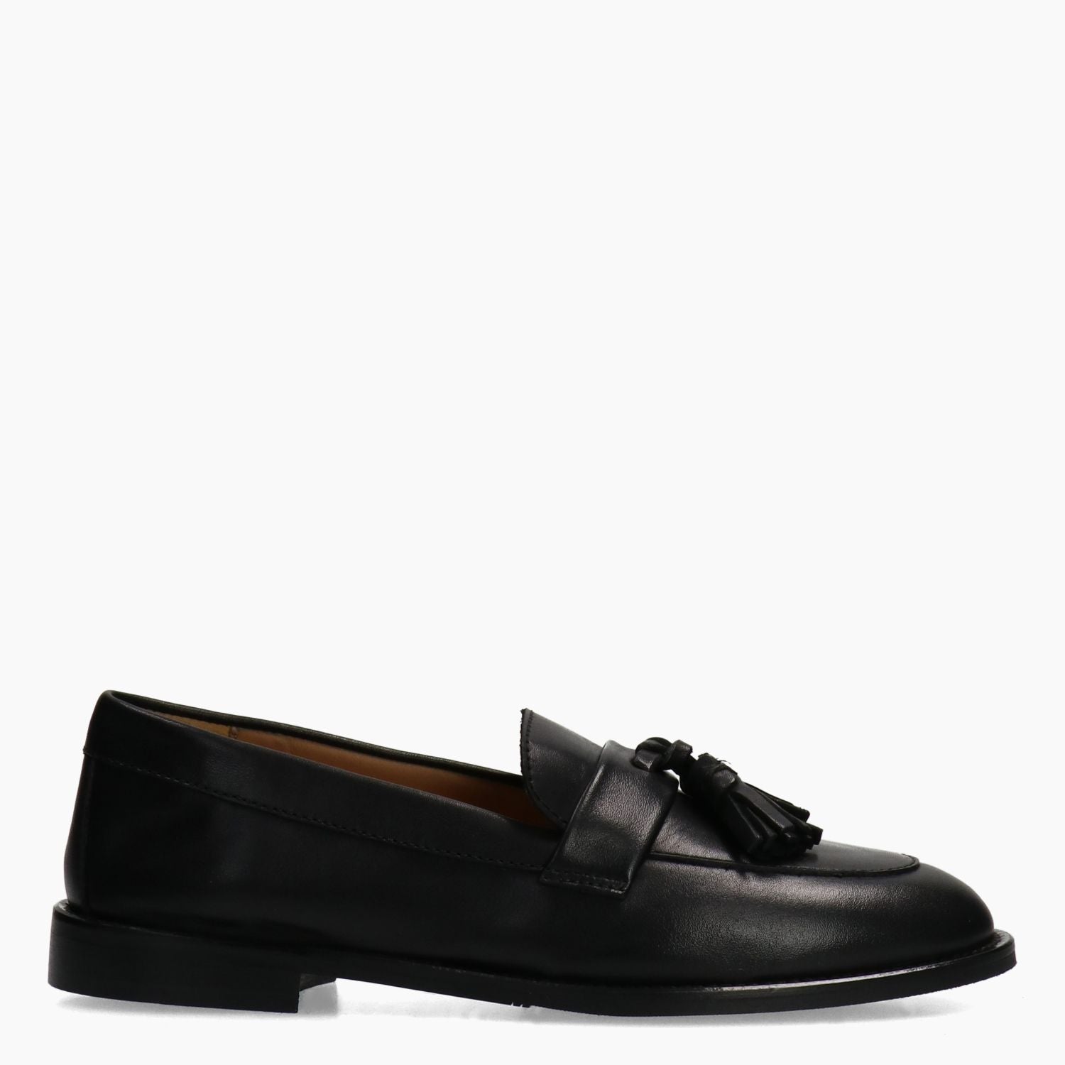 Black leather loafer with tassels. Satchel-style leather interior. Rubber sole with 1.5 cm heel. Garlani women's fall/winter collection.