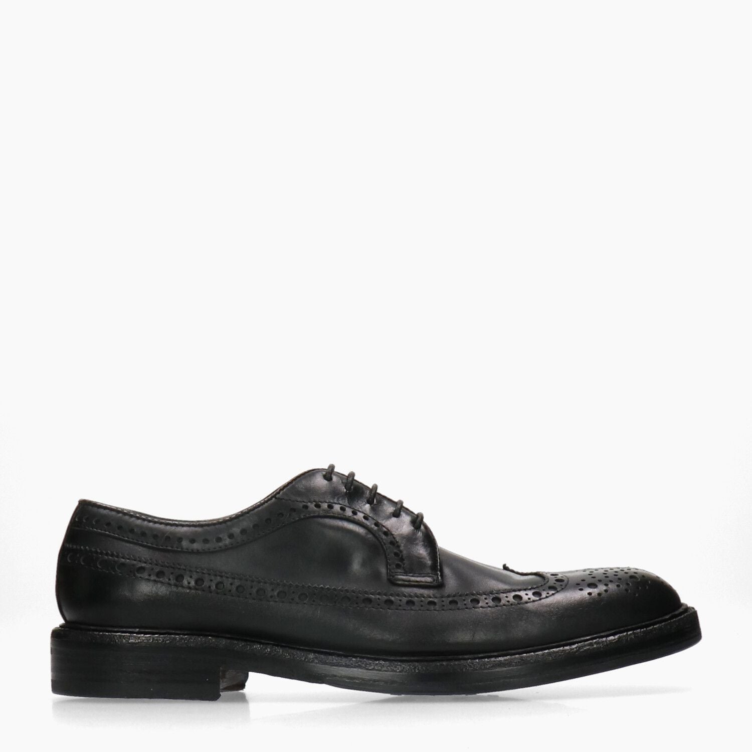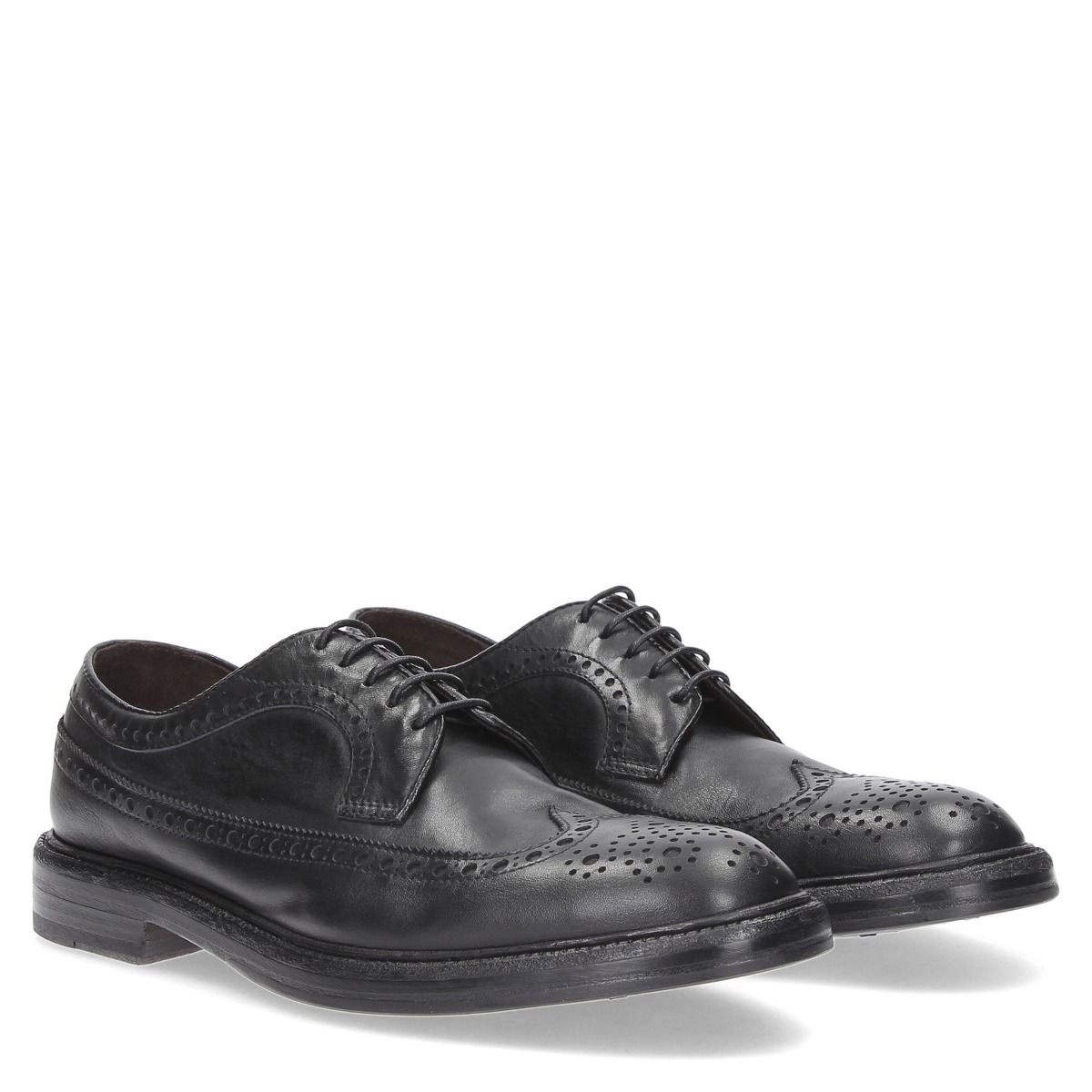 Black leather lace-ups with a wingtip. Leather lining. Leather sole with a 2 cm heel. Green George men's collection.