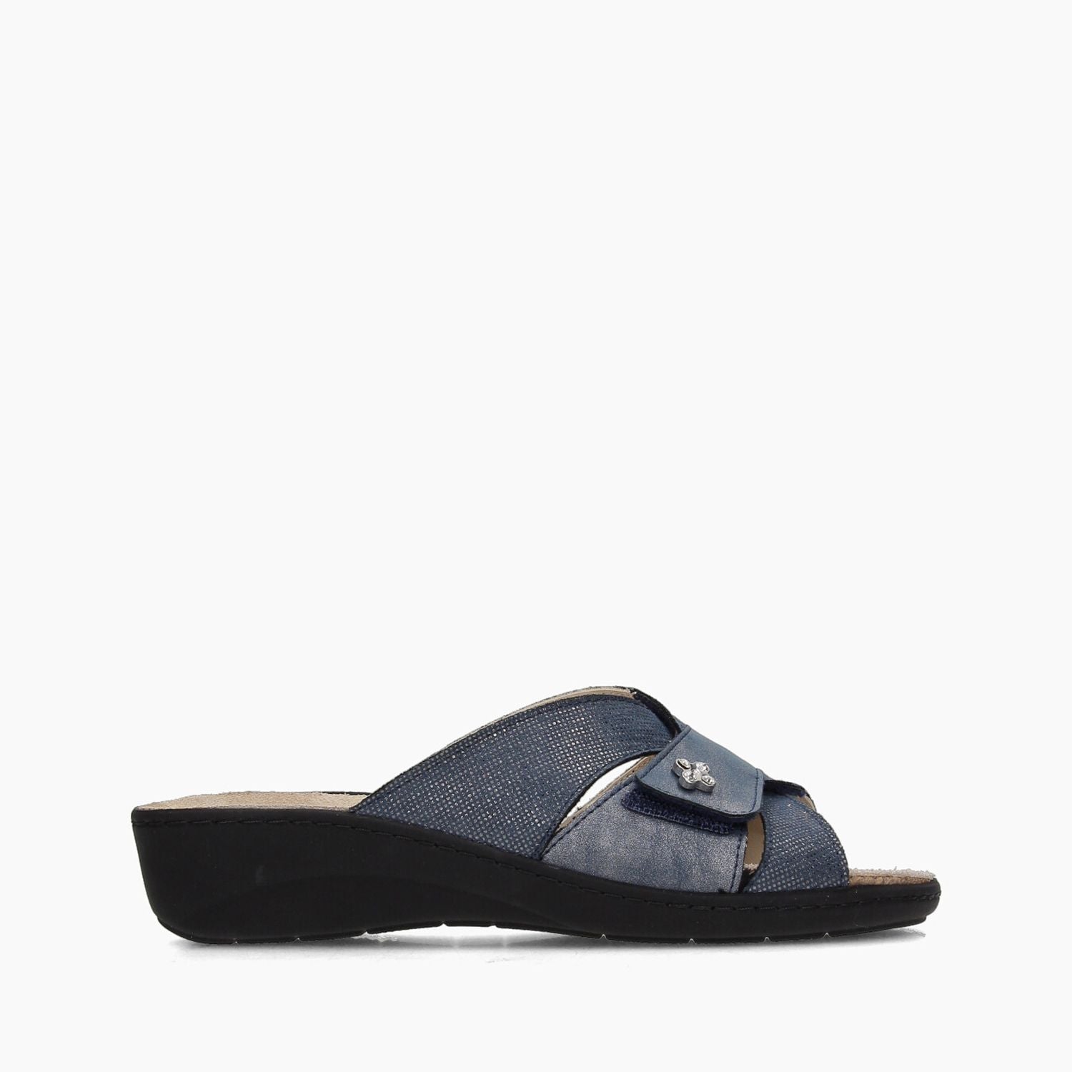 Blue leather slippers with Velcro fastening, 40 wedge, removable insole, rubber sole.