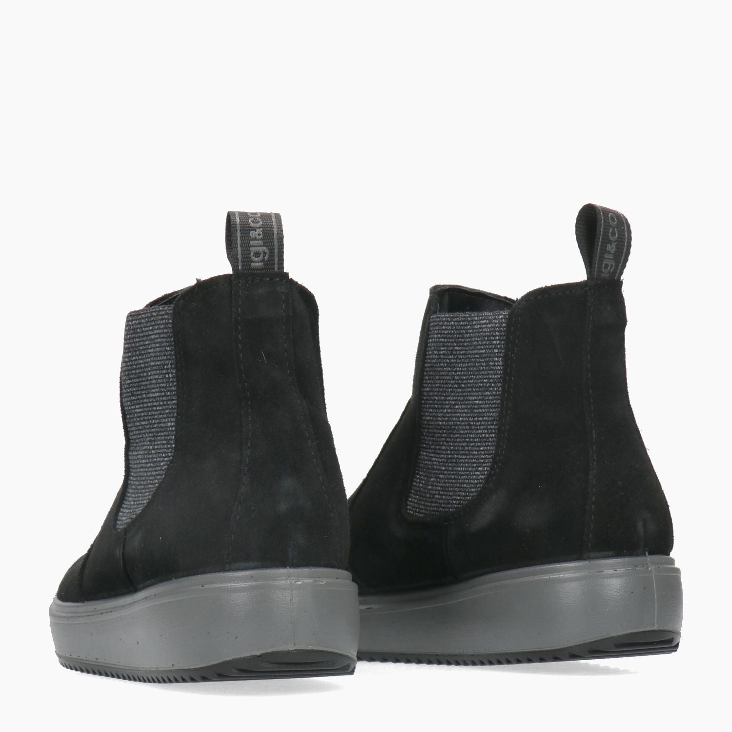 Igi&Co ankle boots with black suede upper. Round toe. Elasticated side stripes. Removable leather insole. Rubber sole. Igi&Co women's Fall/Winter collection.