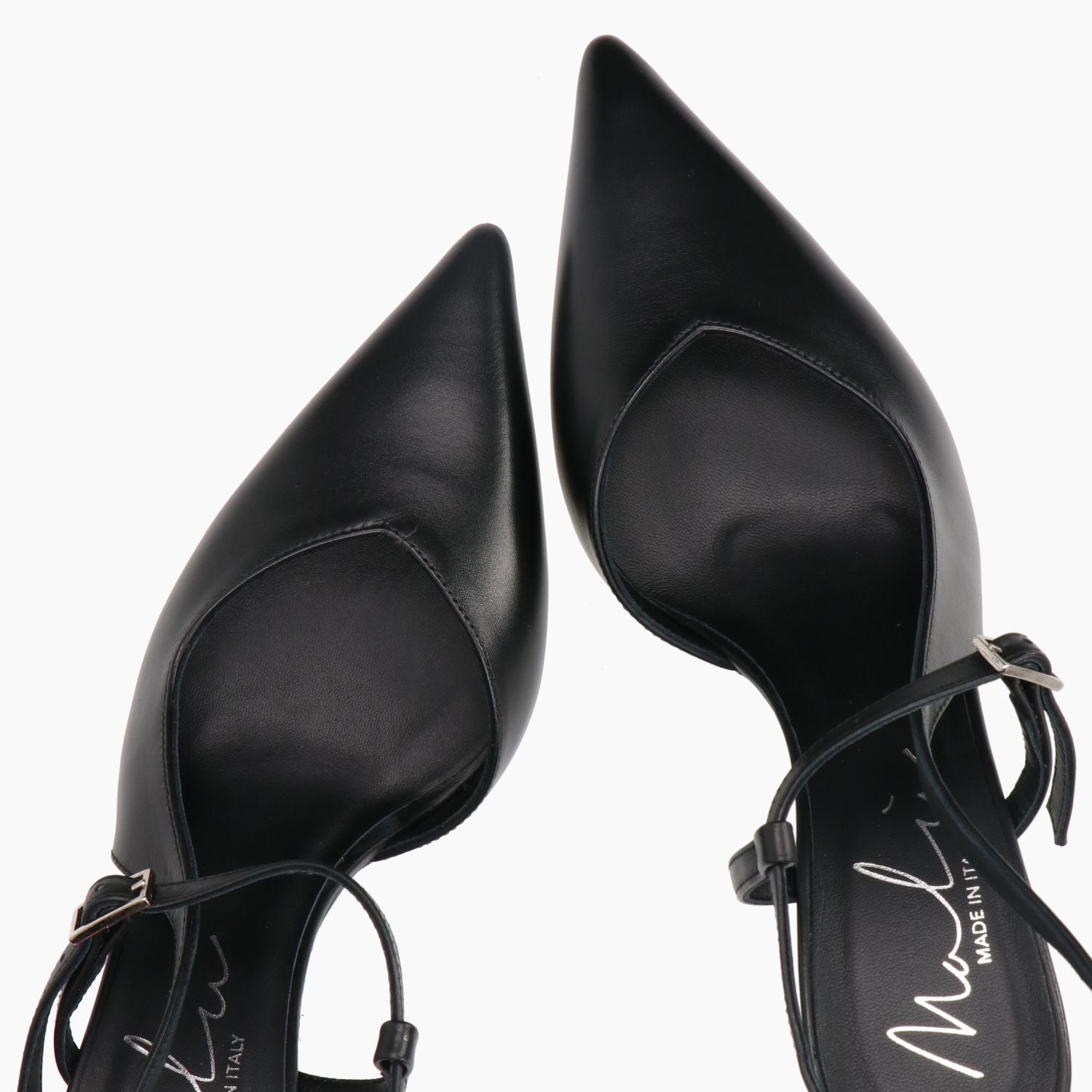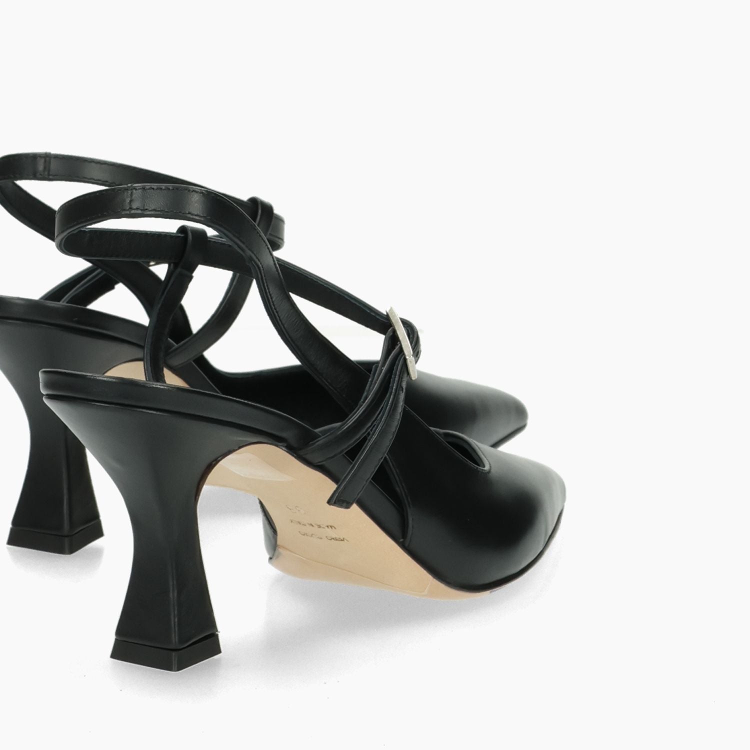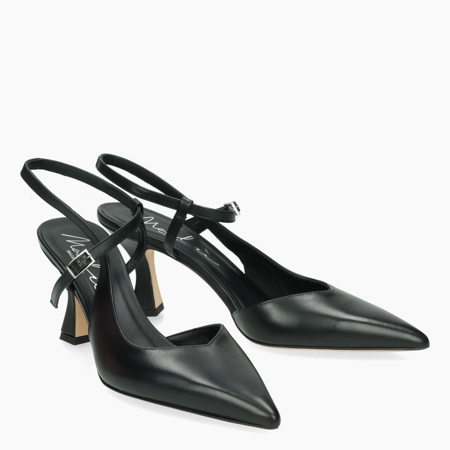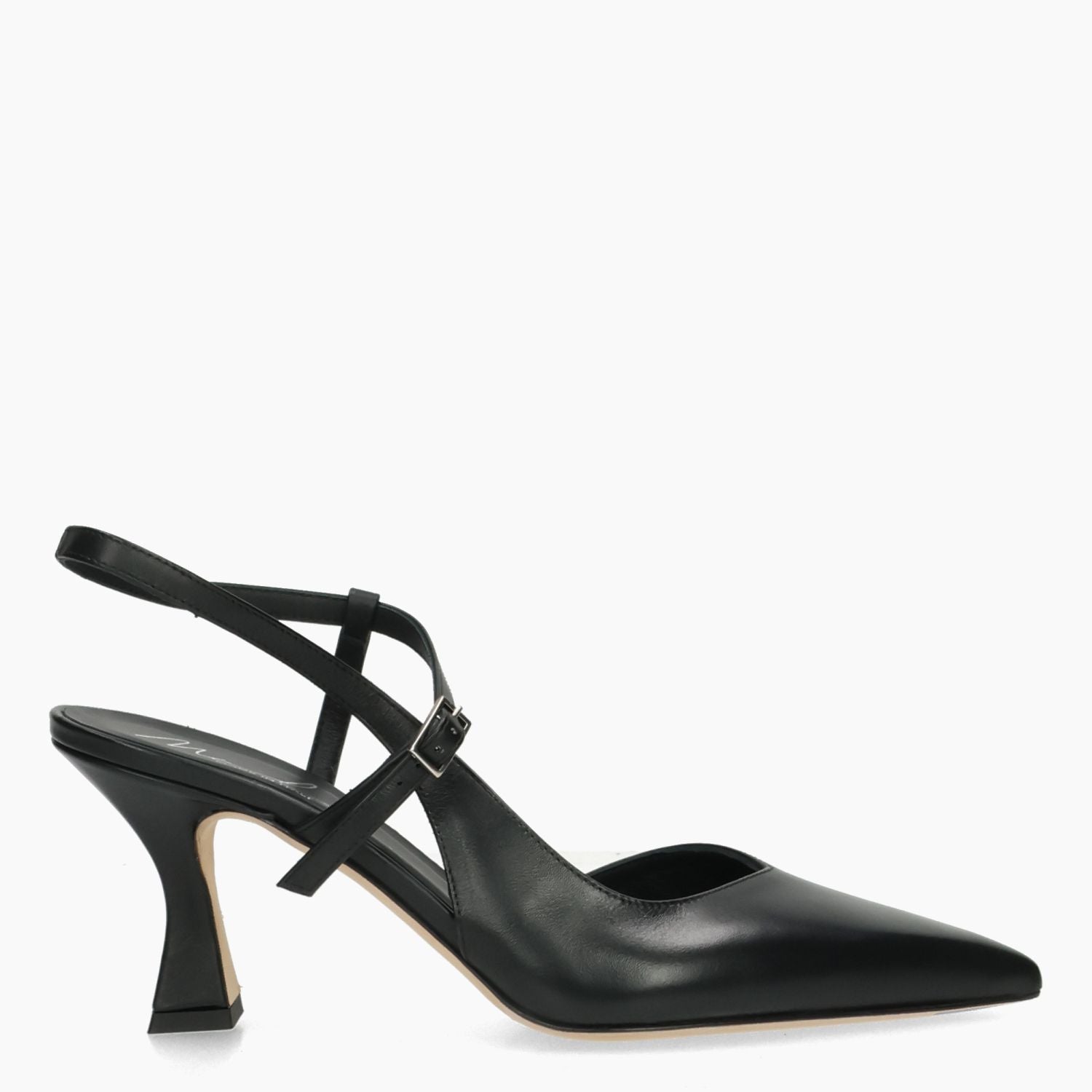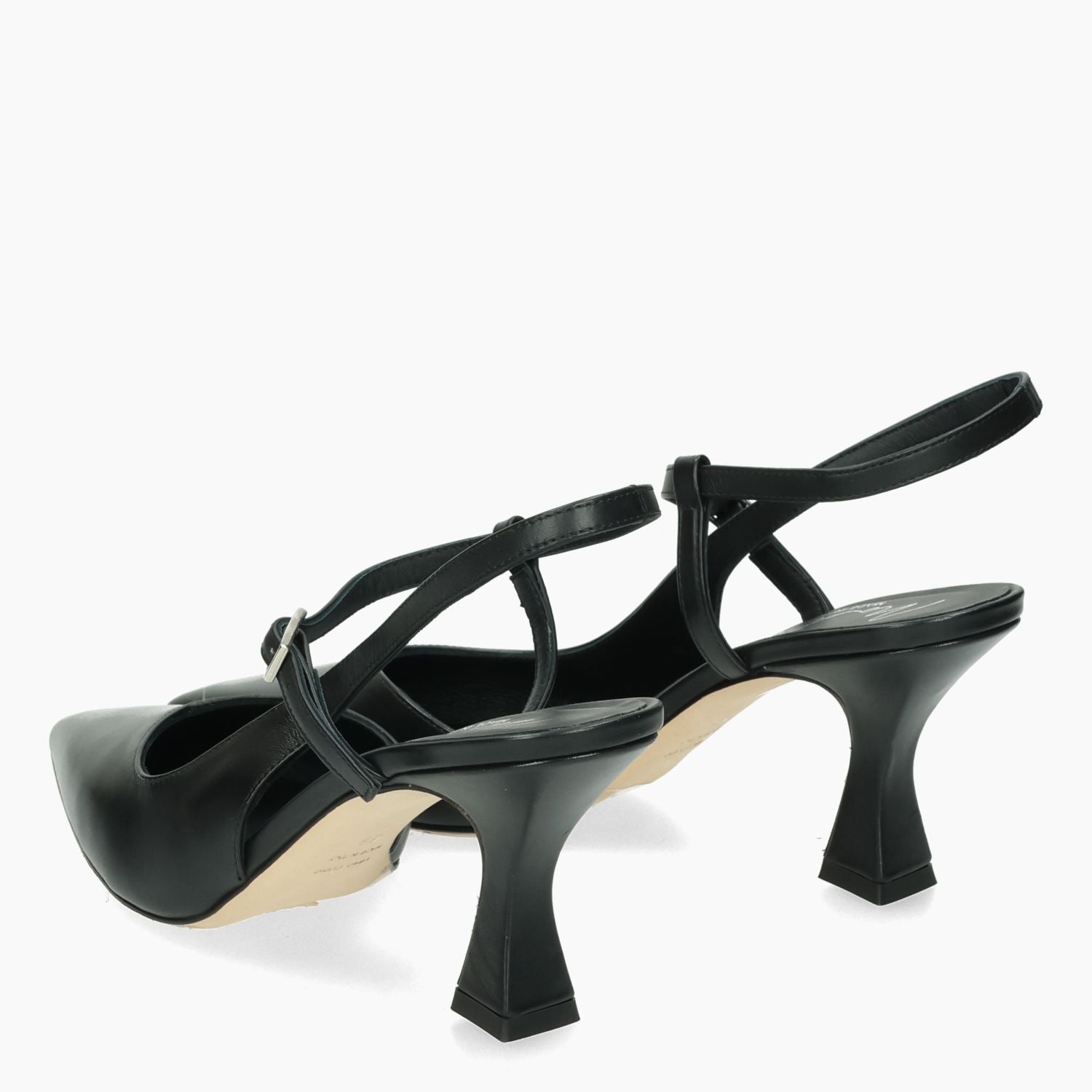 Black leather Chanel. Ankle strap with adjustable buckle. Leather lining. Leather sole. 6.5 cm heel. Malu' women's Spring/Summer collection.