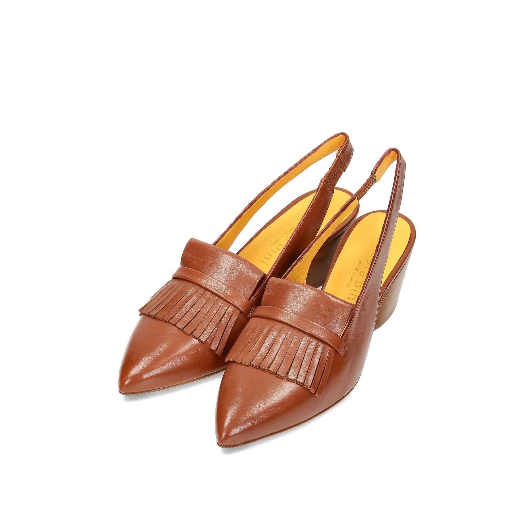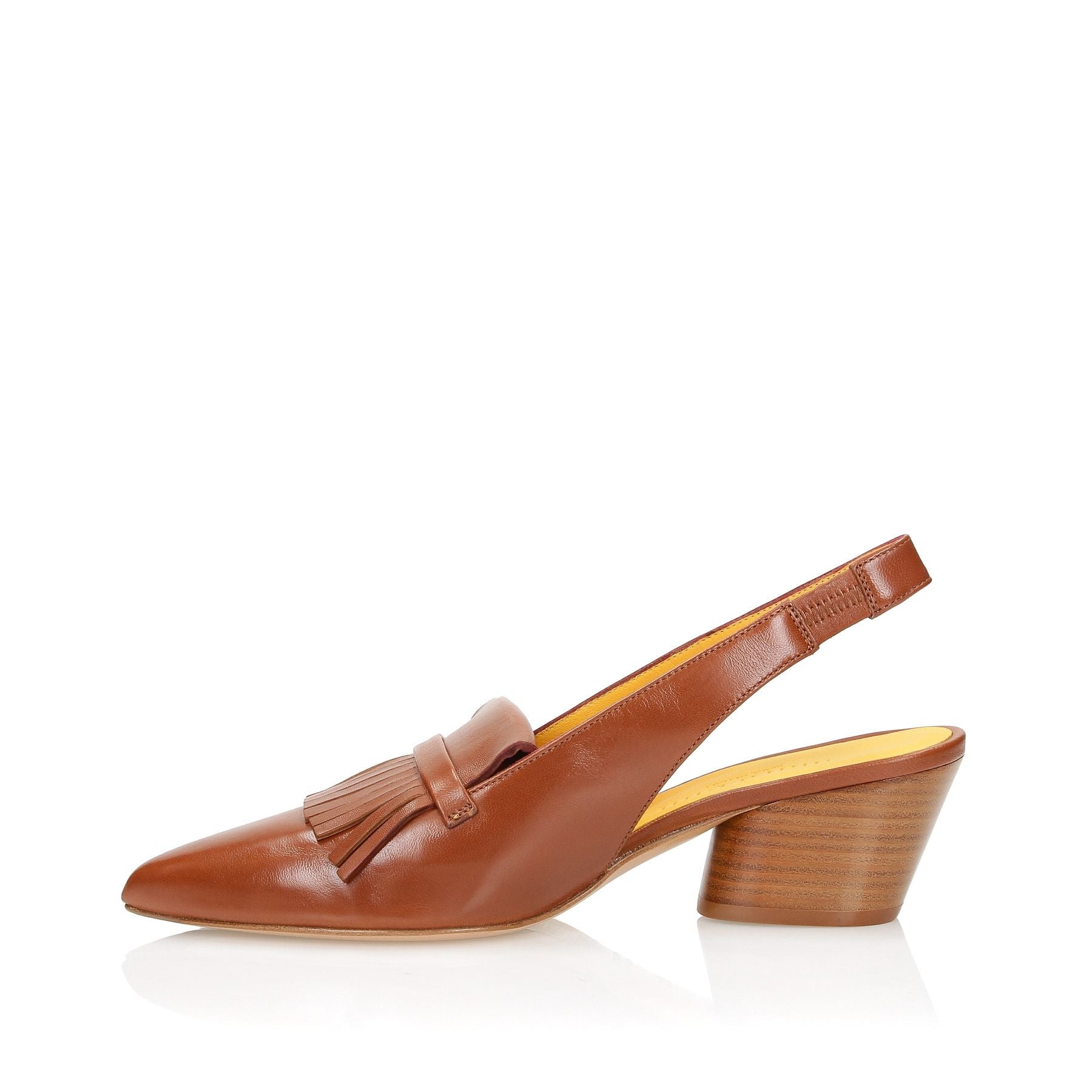 Chanel in tan leather with fringe, 40 heel, leather sole.