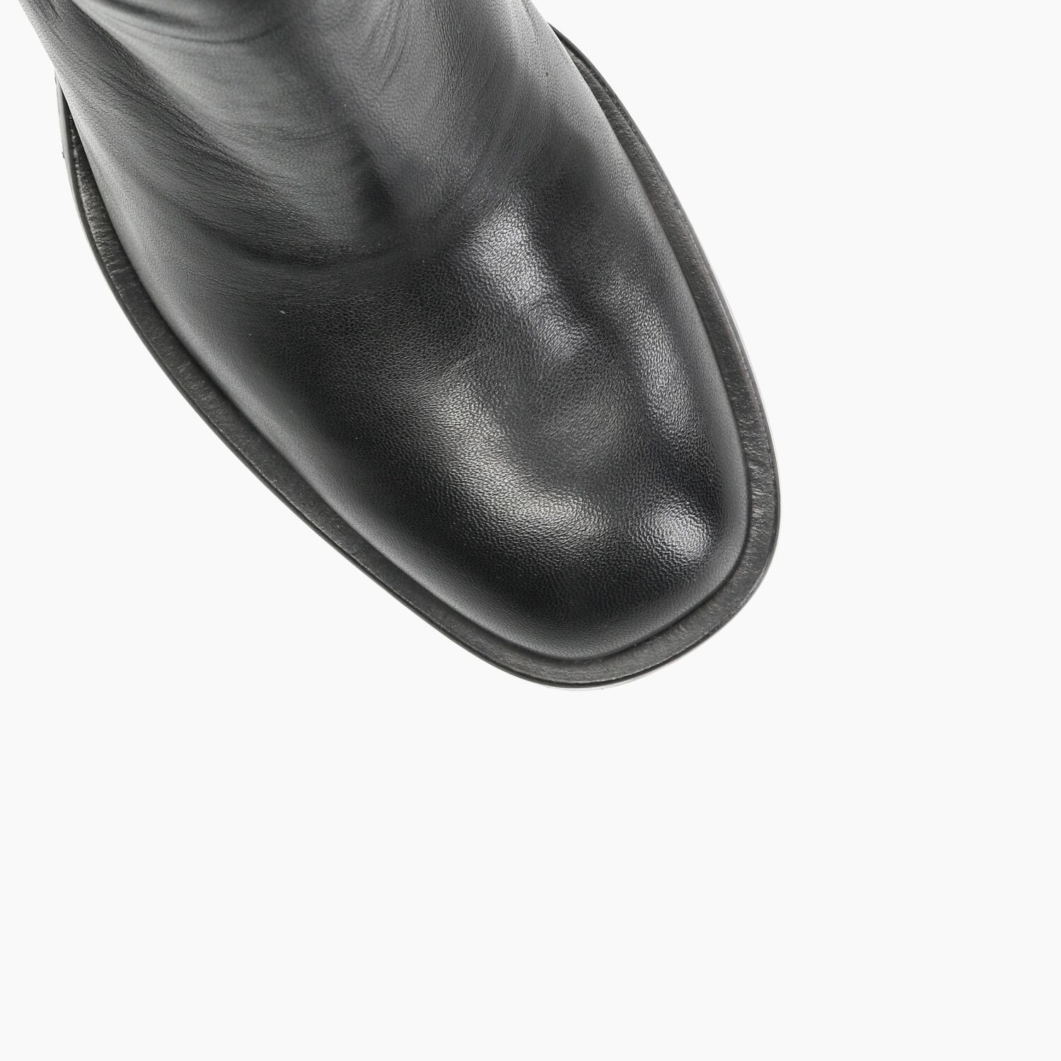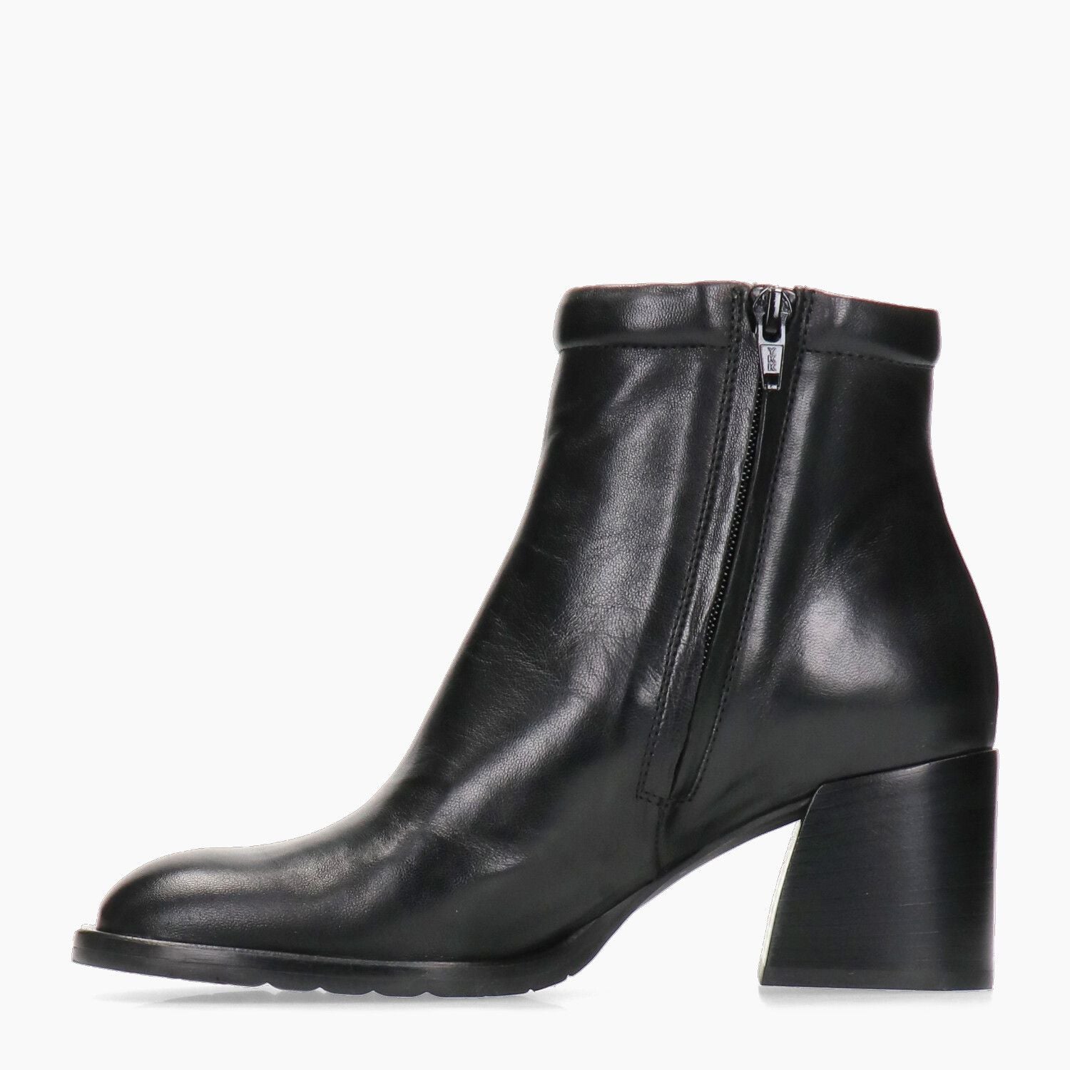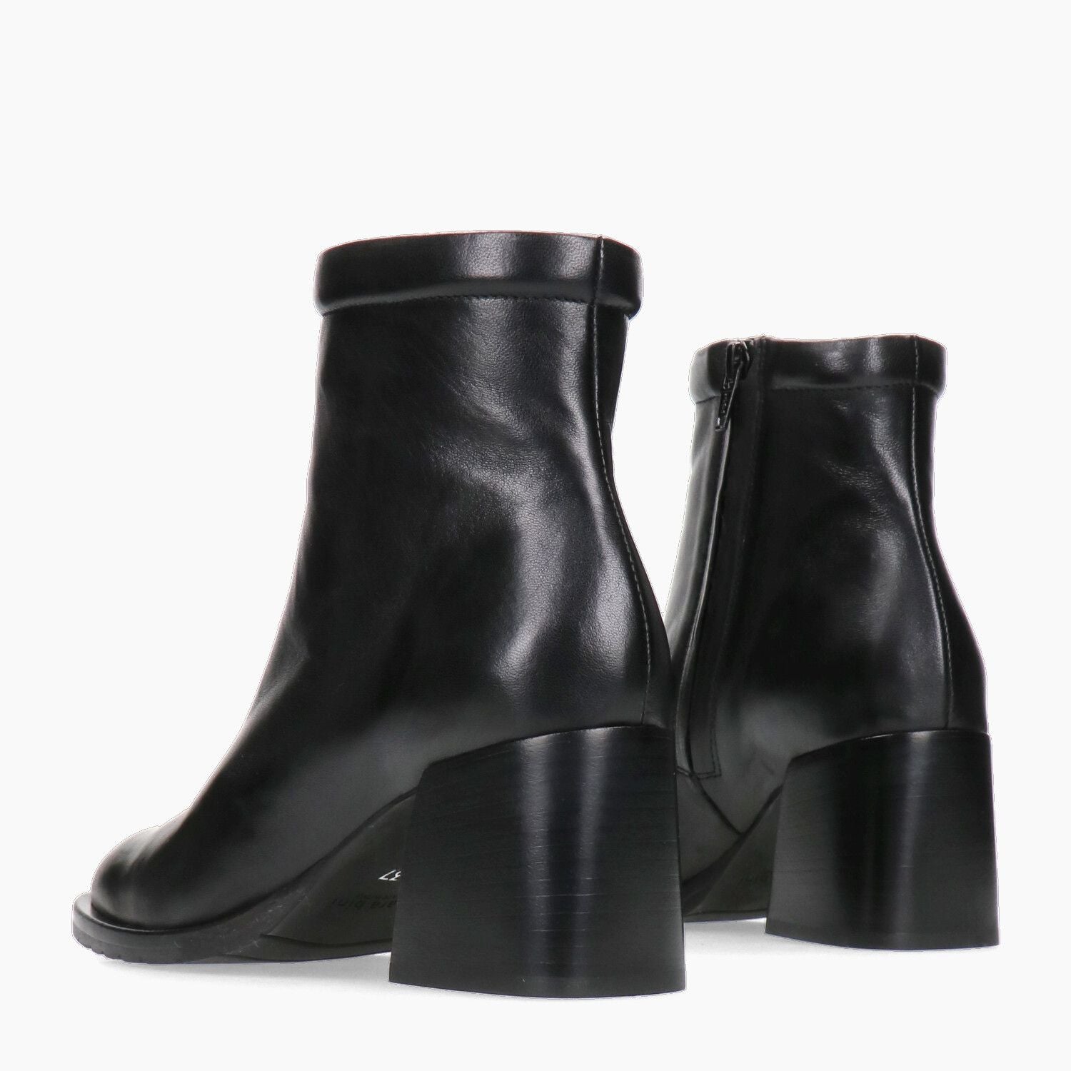 Black leather ankle boot with a lightly padded edge at the top of the shaft. Square toe. Side zip closure. Leather lining. Rubber sole. 6 cm covered heel. Mara Bini women's Fall/Winter collection.