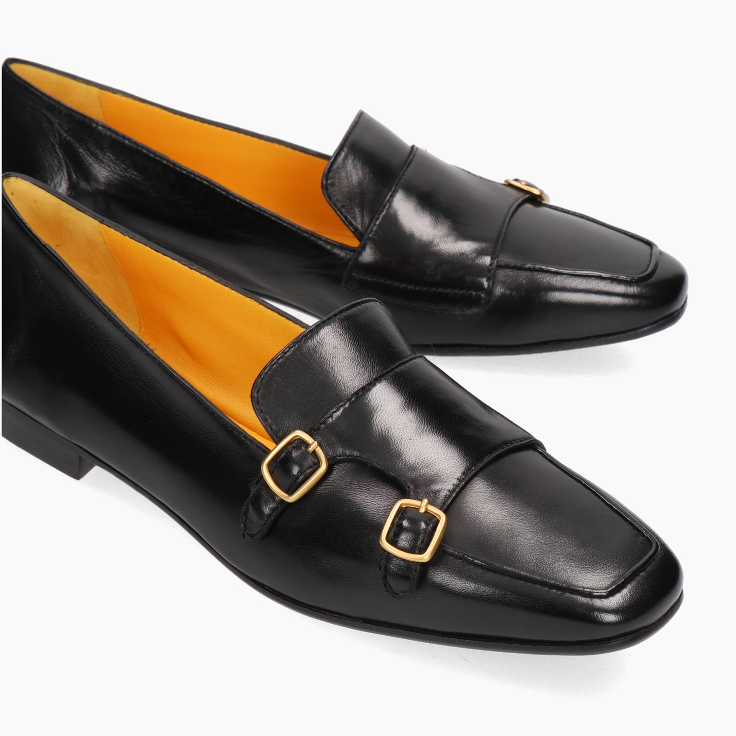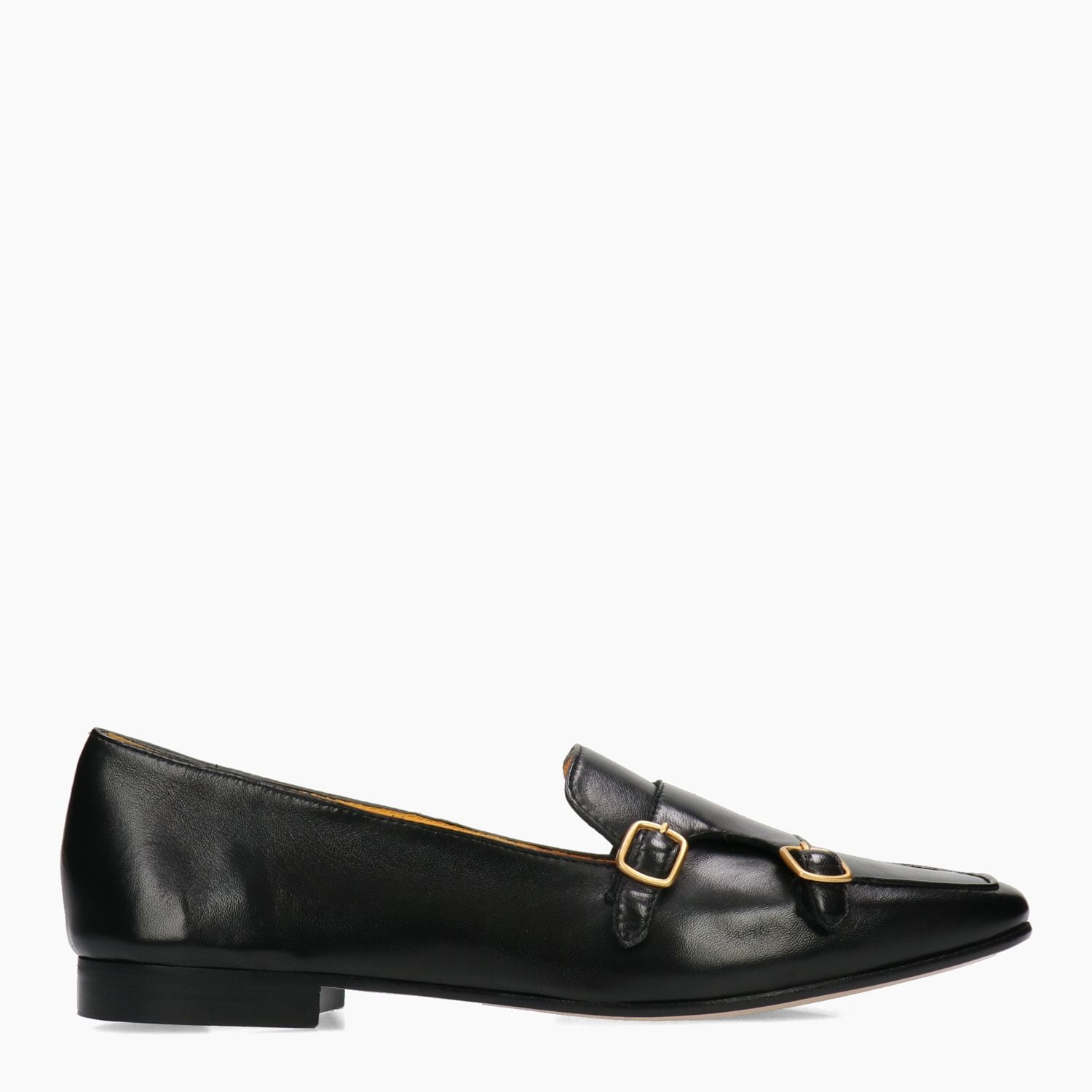 Black leather loafer with double buckle. Leather lining. Leather sole with non-slip rubber insert. 1.5 cm heel. Mara Bini women's spring/summer collection.