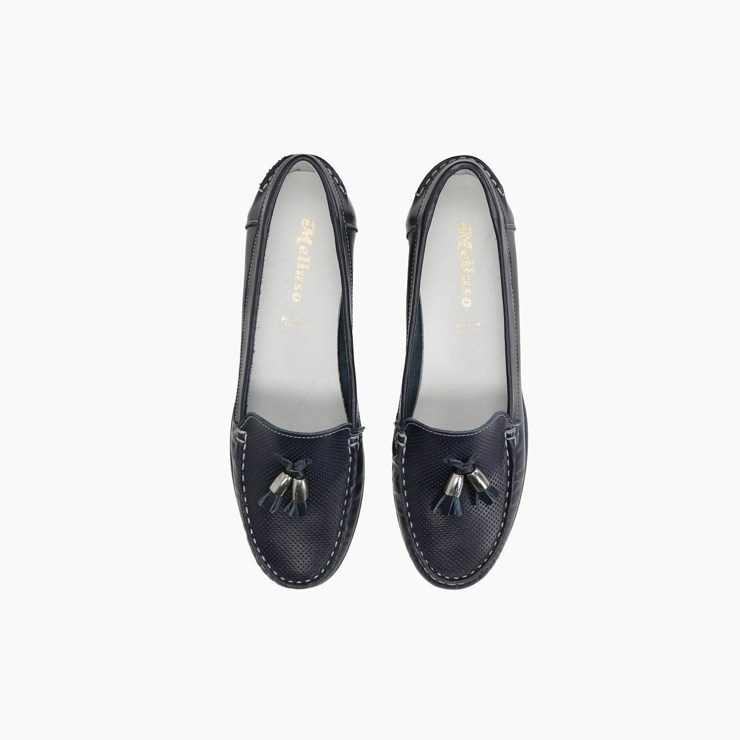 Blue leather loafers with tassels, 40 wedge, rubber sole.