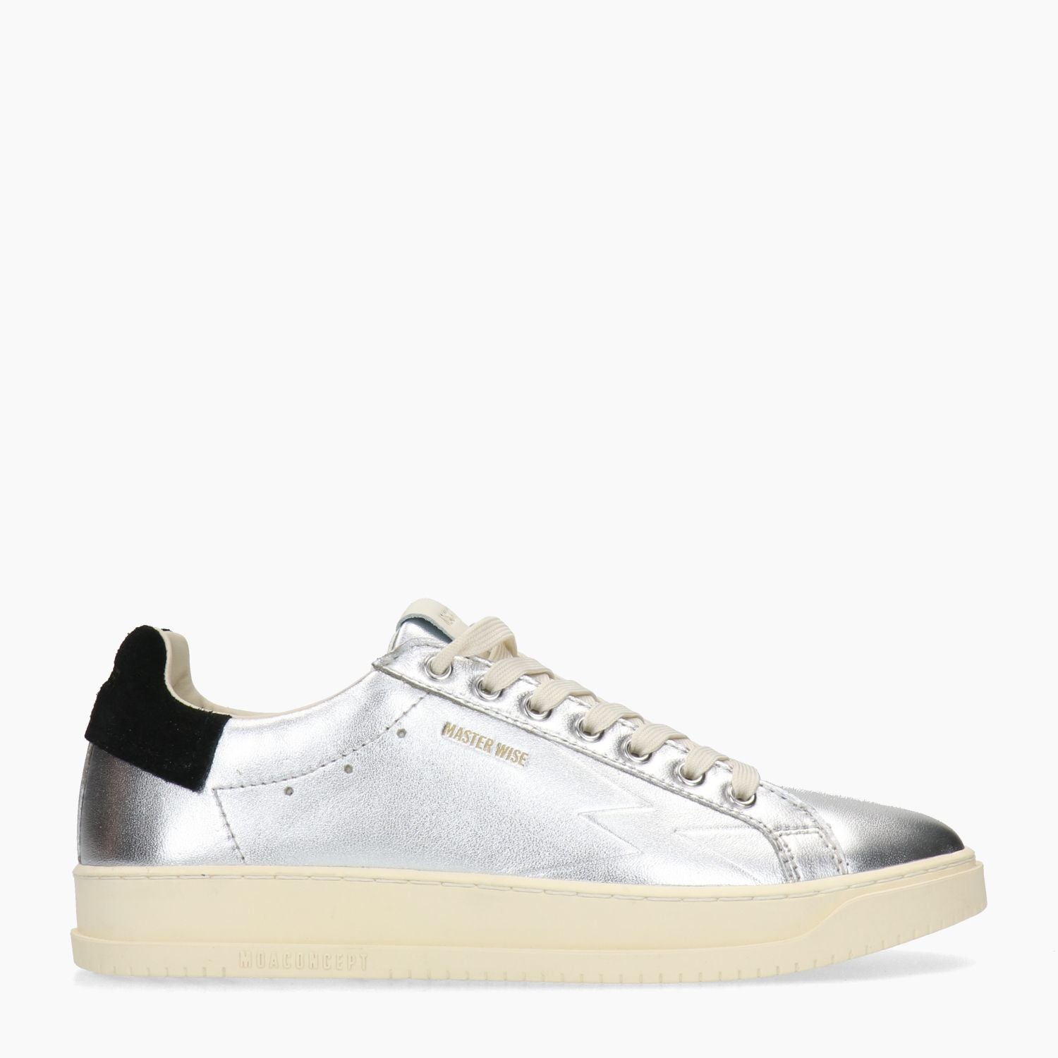 Moaconcept sneakers with silver laminated leather upper. Round toe. Lace-up closure. Black suede heel tab. Leather and fabric lining. Rubber sole. Moaconcept women's collection.