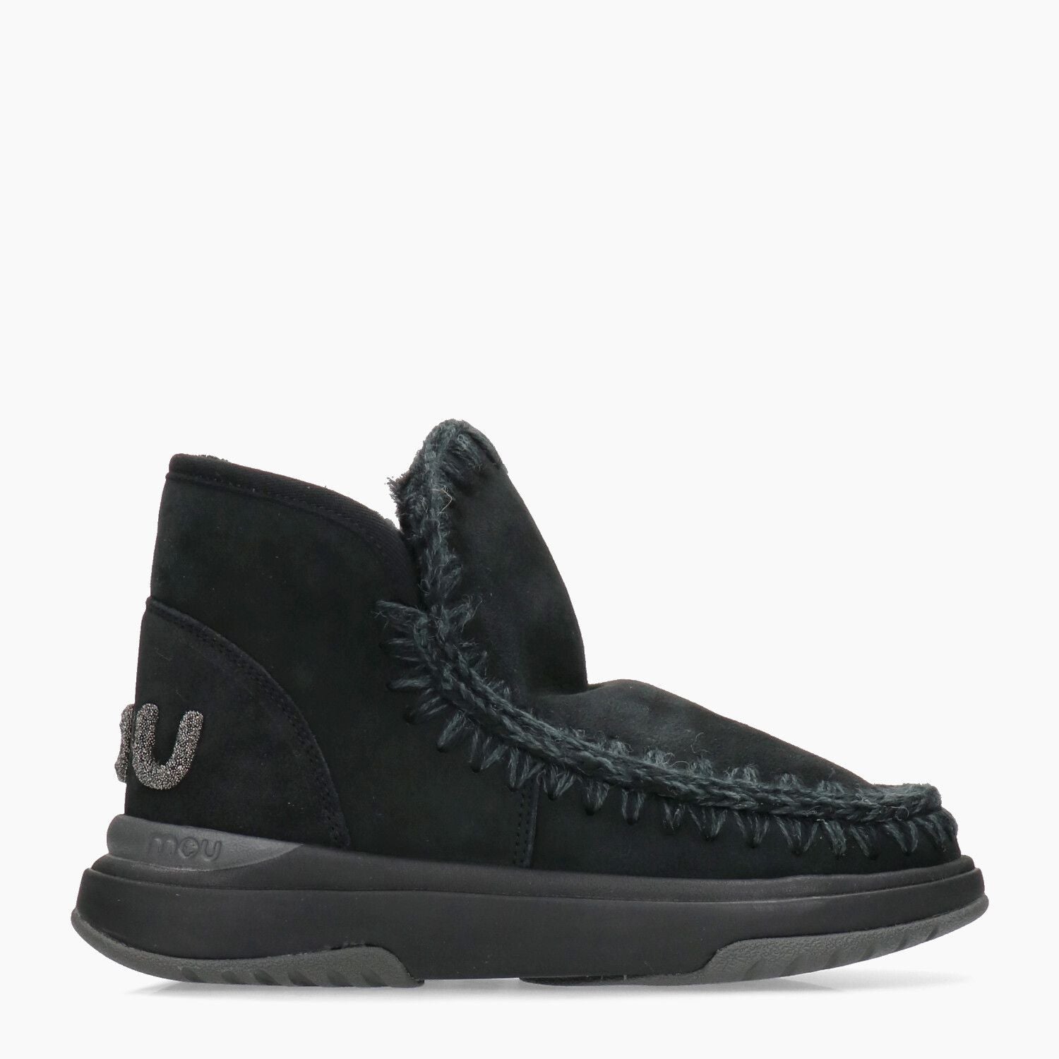 Mou Eskimo Jogger with suede upper in antique black. Contrast stitching. Round toe. 3D logo. Fur lining. Rubber sole. Mou women's Fall/Winter collection.