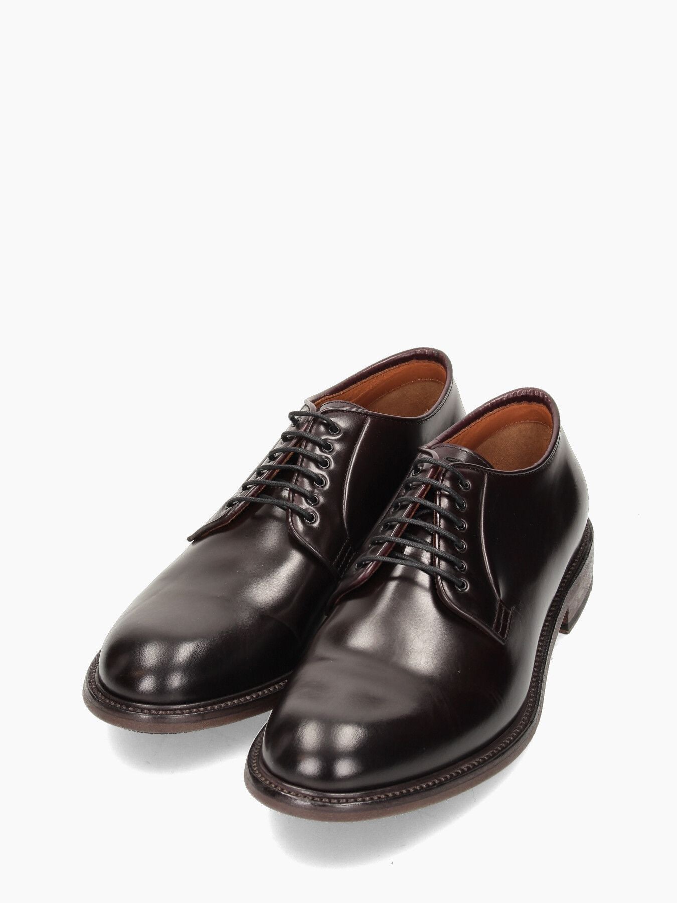 Burgundy leather Derby, 20 cm heel, leather and stitched rubber sole.