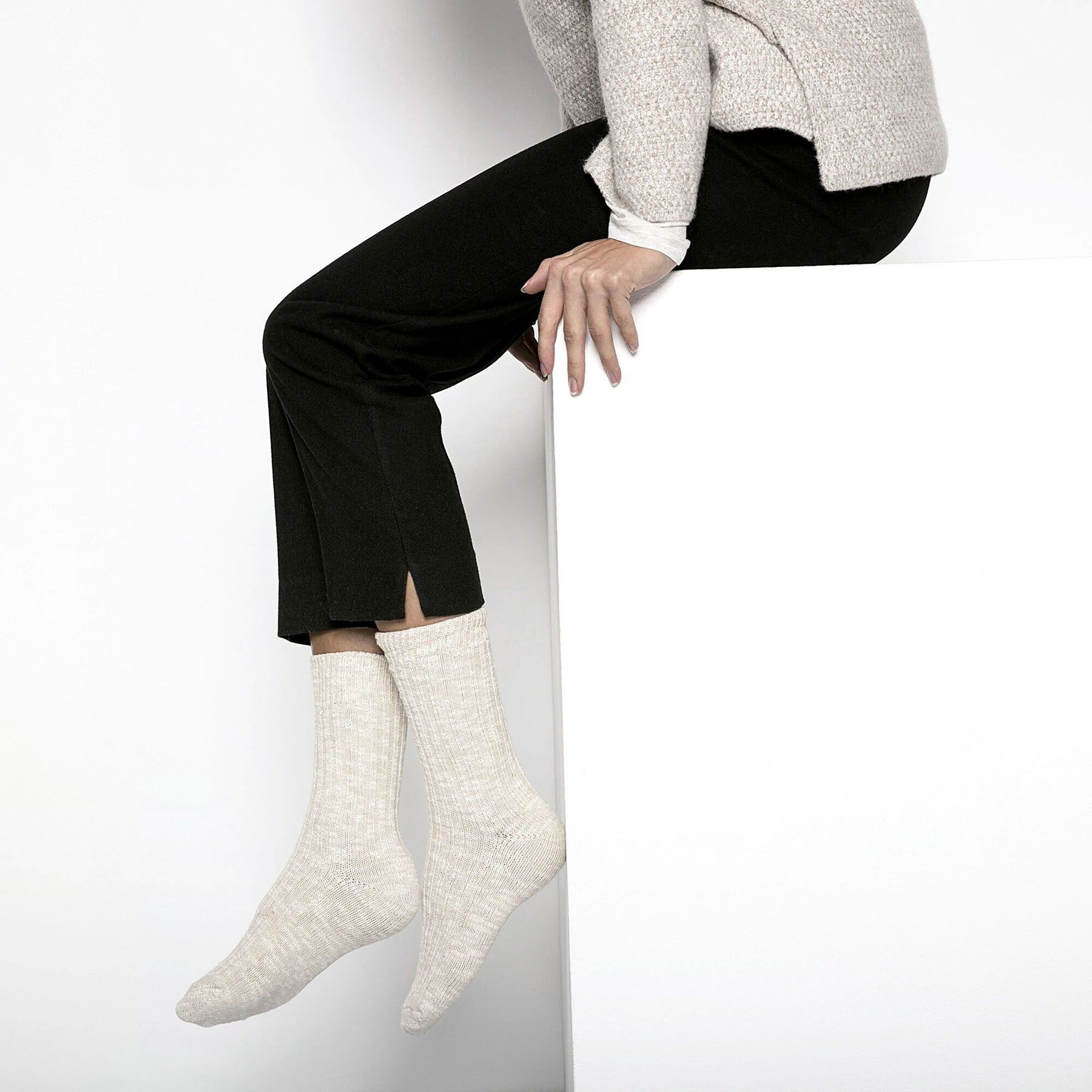Socks in 94% cotton, 4% polyamide, 2% elastane, American size, beige/white. Birkenstock women's collection.