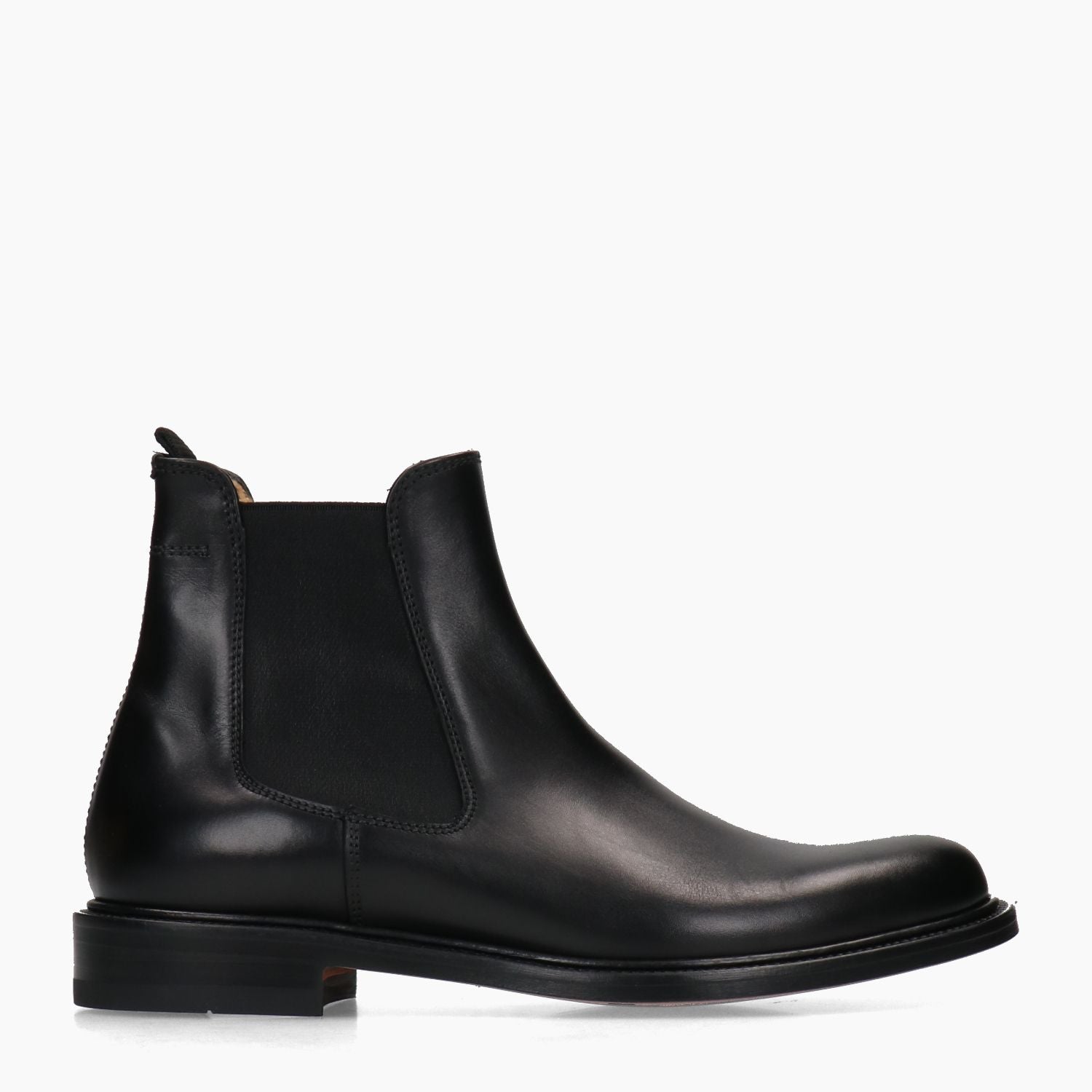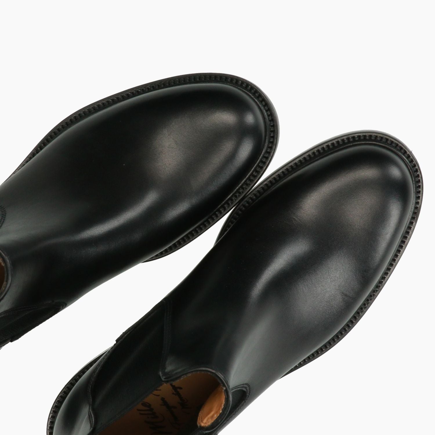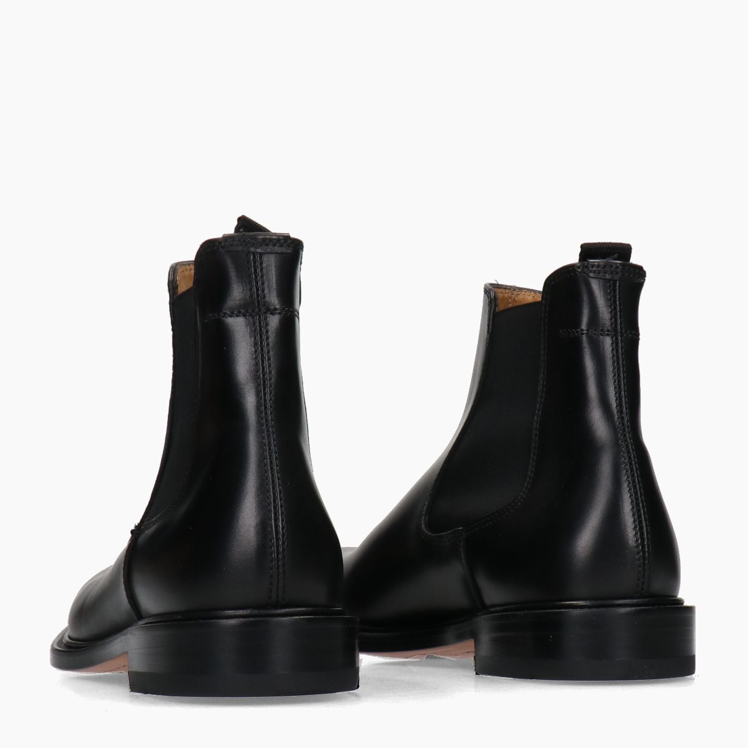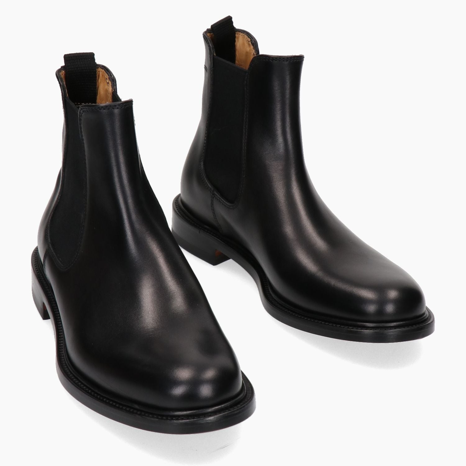 Black leather Beatles with black elastic side bands. Leather lining. 2.5 cm heel, leather sole. Mille 885 women's Fall/Winter collection.