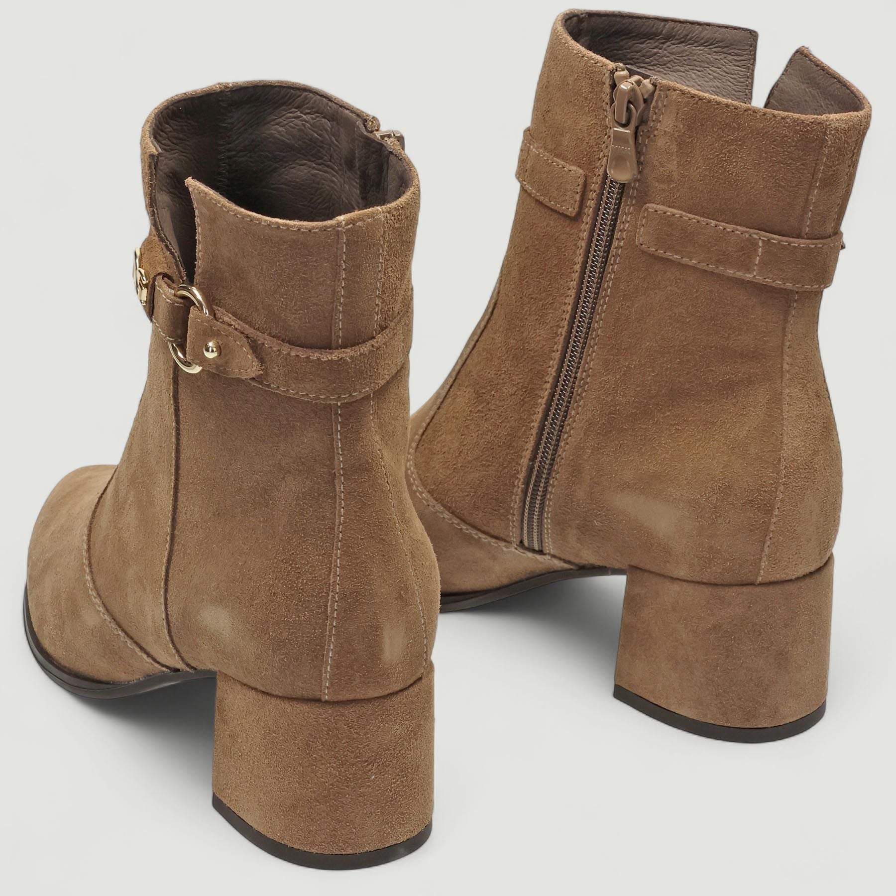 Ankle boots with dove gray suede upper. Internal zip closure with logo strap on the shaft. Leather lining. Rubber sole with 5 cm heel. Nero Giardini women's Fall/Winter collection.