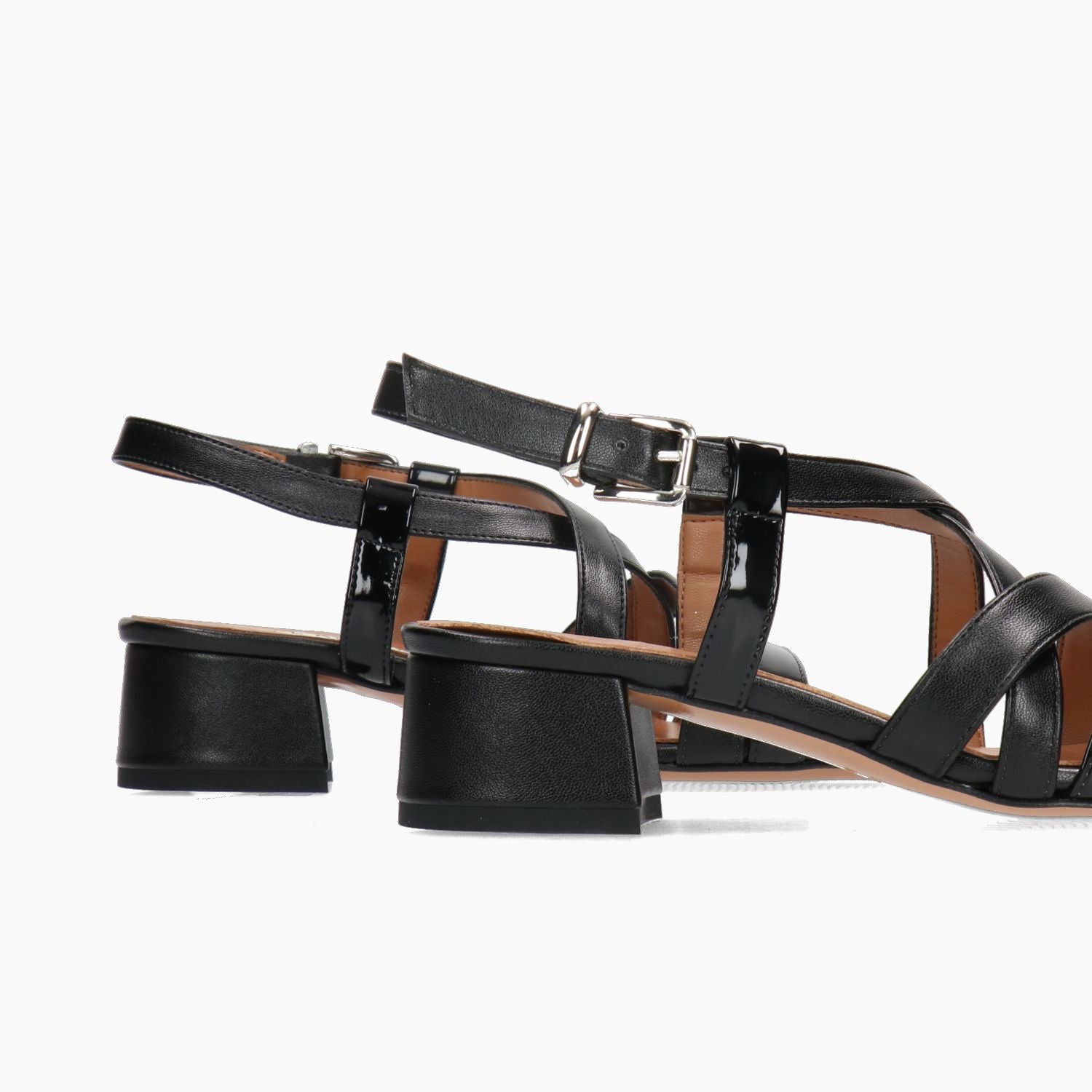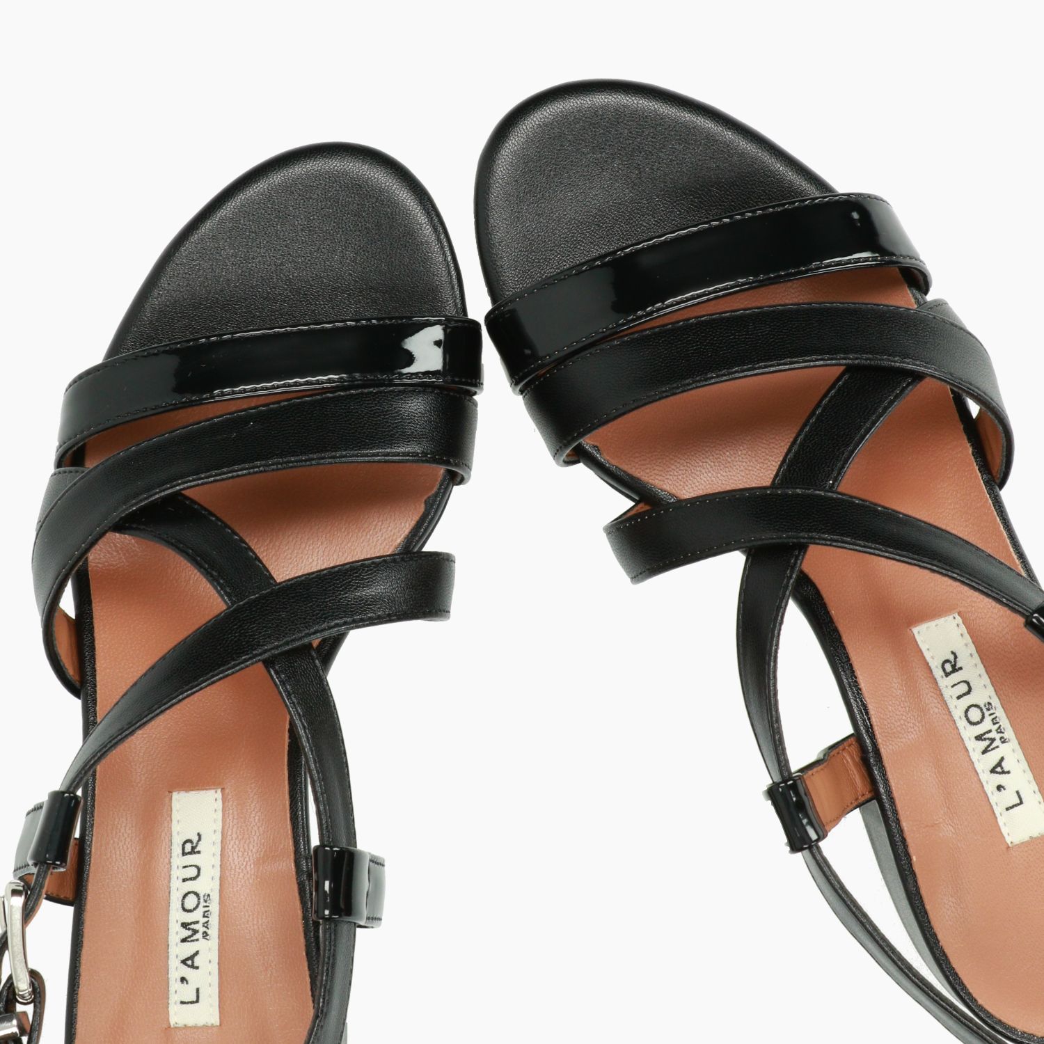 L'Amour Paris black faux leather sandal. Adjustable strap closure. Leather/faux leather lining. Leather sole with 3.5 cm heel. L'Amour Paris women's Spring/Summer collection.