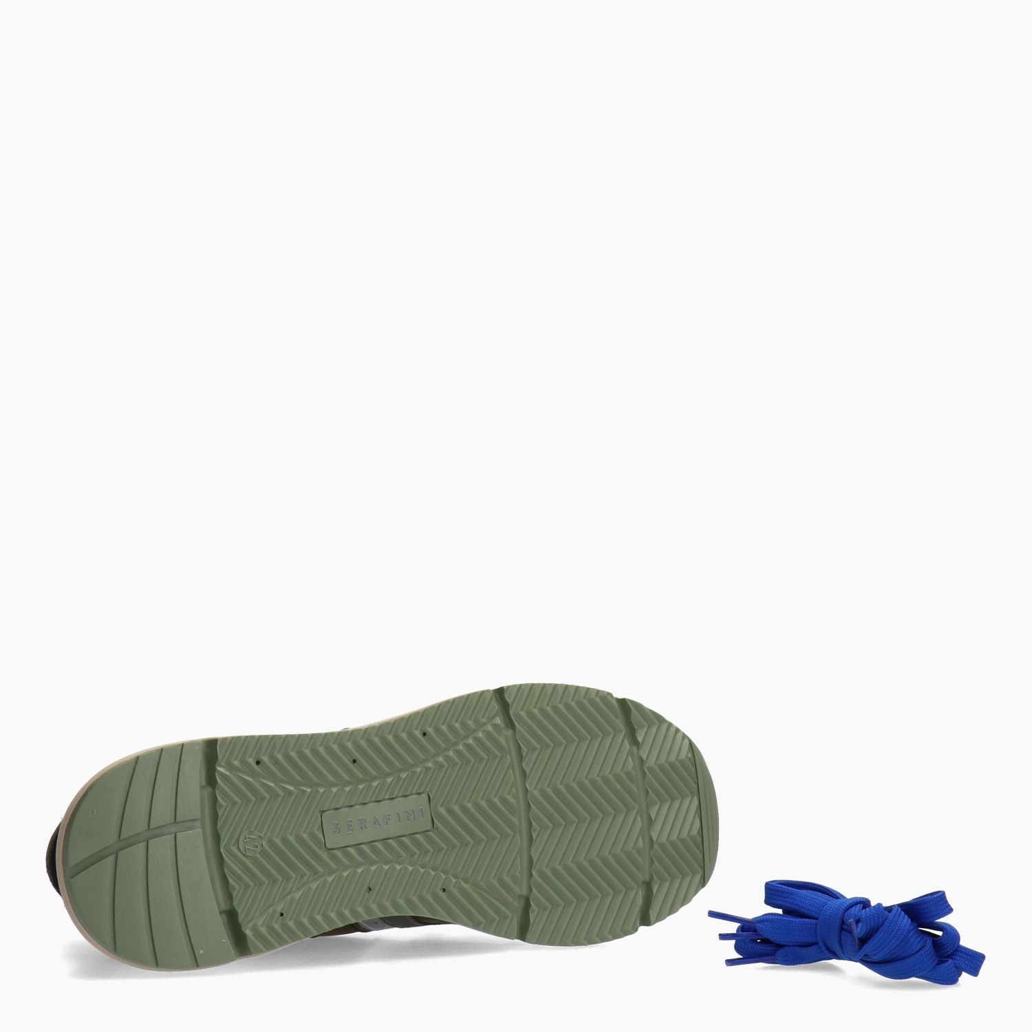 Sneakers in black technical fabric with suede and military green leather inserts. Melange wool-effect laces. Spare blue cotton laces. Tongue with stitched leather logo. Fabric and leather lining. Removable leather insole. Rubber sole. 5 cm sole. Serafini men's collection.