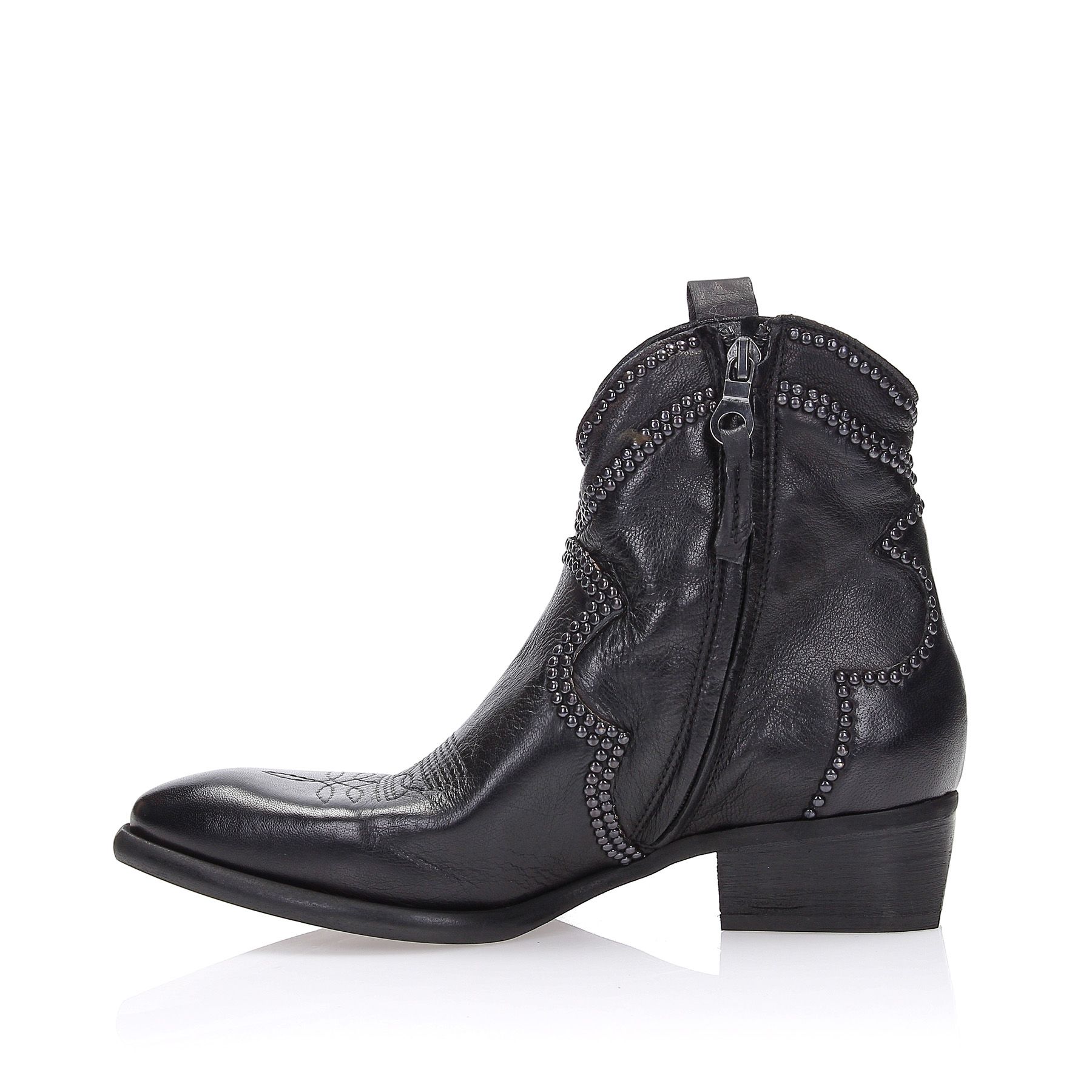 Black leather Texan boot with matching studs, internal zip, 30 cm heel, rubber sole.