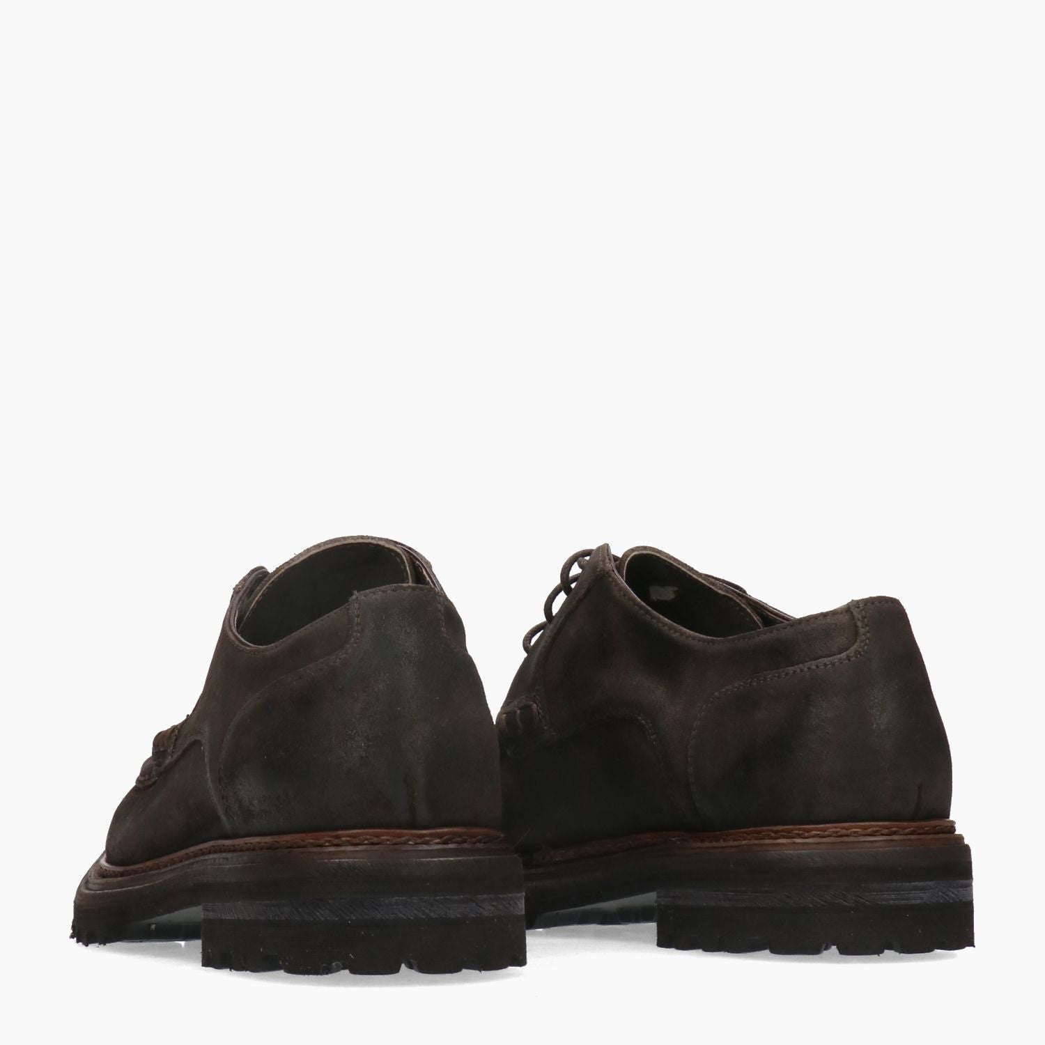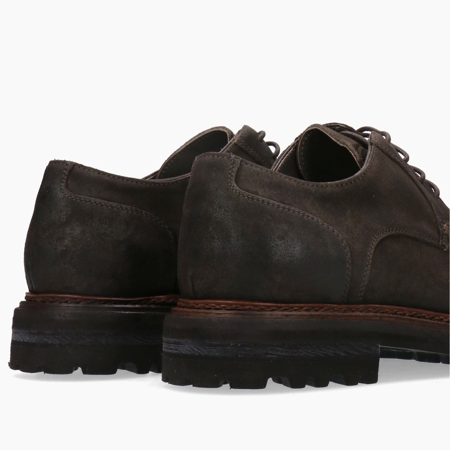 Stringata en cuir vieilli marron. Intérieur en cuir. Semelle en caoutchouc microporeux XL avec bande de roulement roche. Talon de 3 cm. Collection Brecos homme Automne/Hiver.